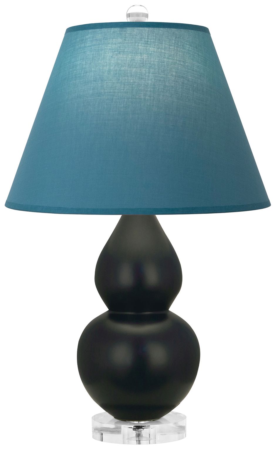 Double Gourd 22"H Obsidian And Lucite Lamp w/ Bright Blue And Gray Shade