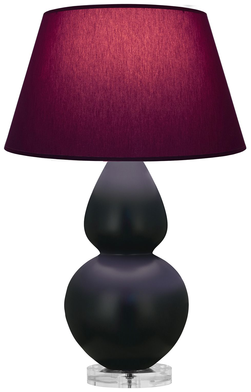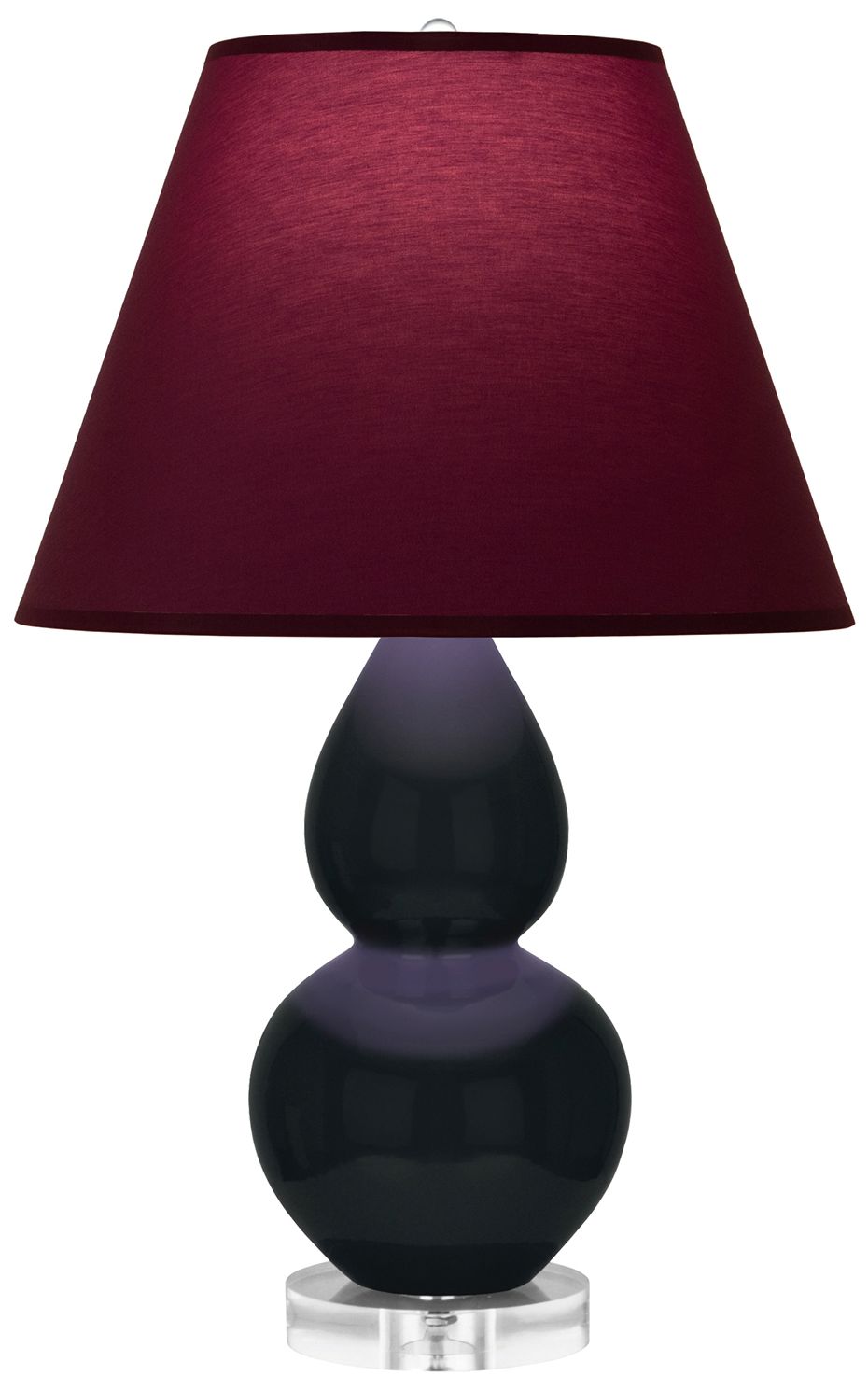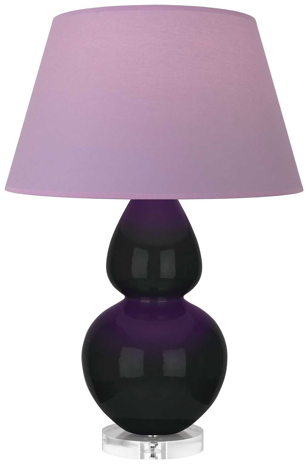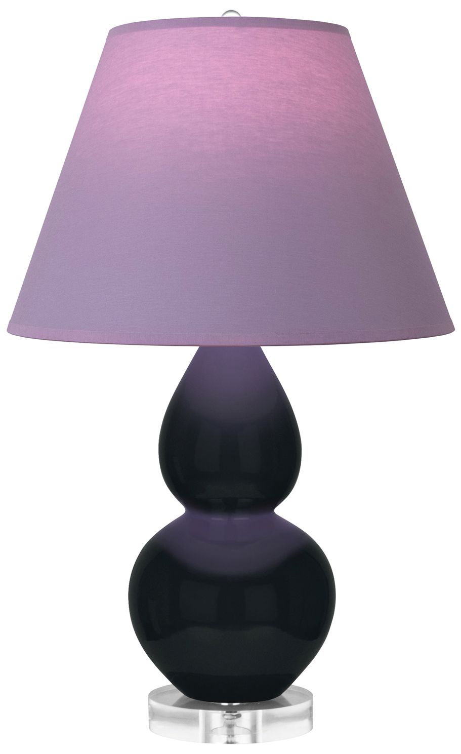 Double Gourd 30"H Obsidian And Lucite Lamp w/ Plum And Lavender Shade