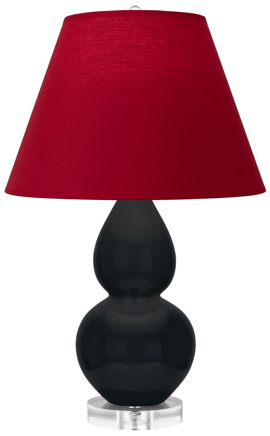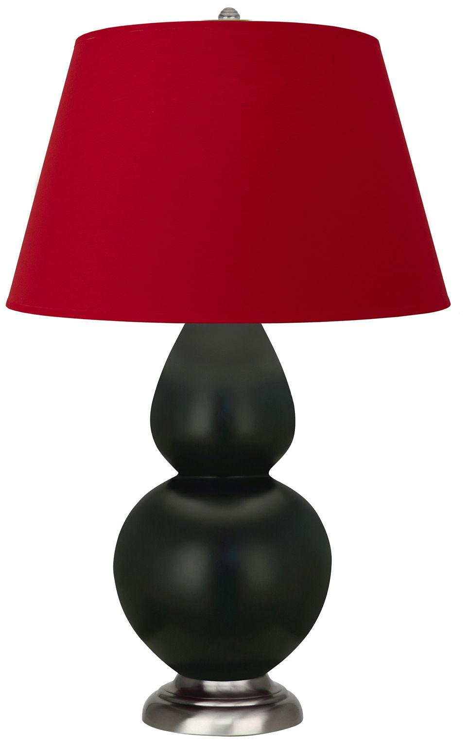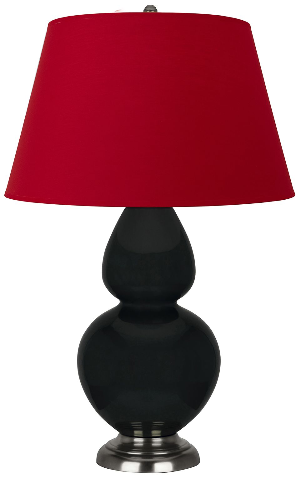 Double Gourd 31"H Obsidian And Silver Lamp w/ Black And Red Shade