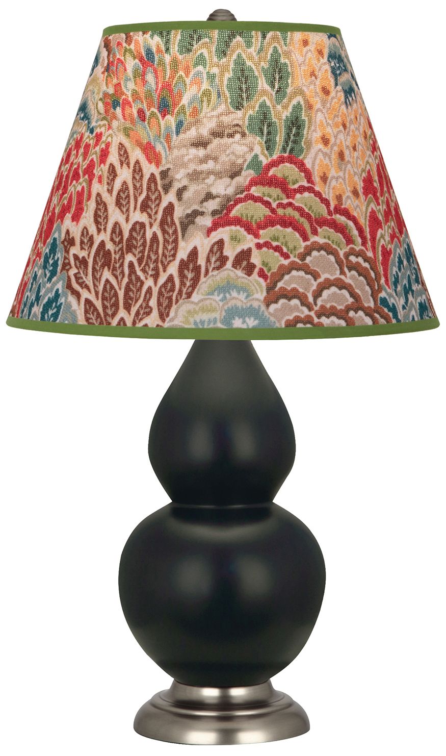 Double Gourd 23"H Matte Obsidian And Silver Lamp w/ Fall Floral Shade