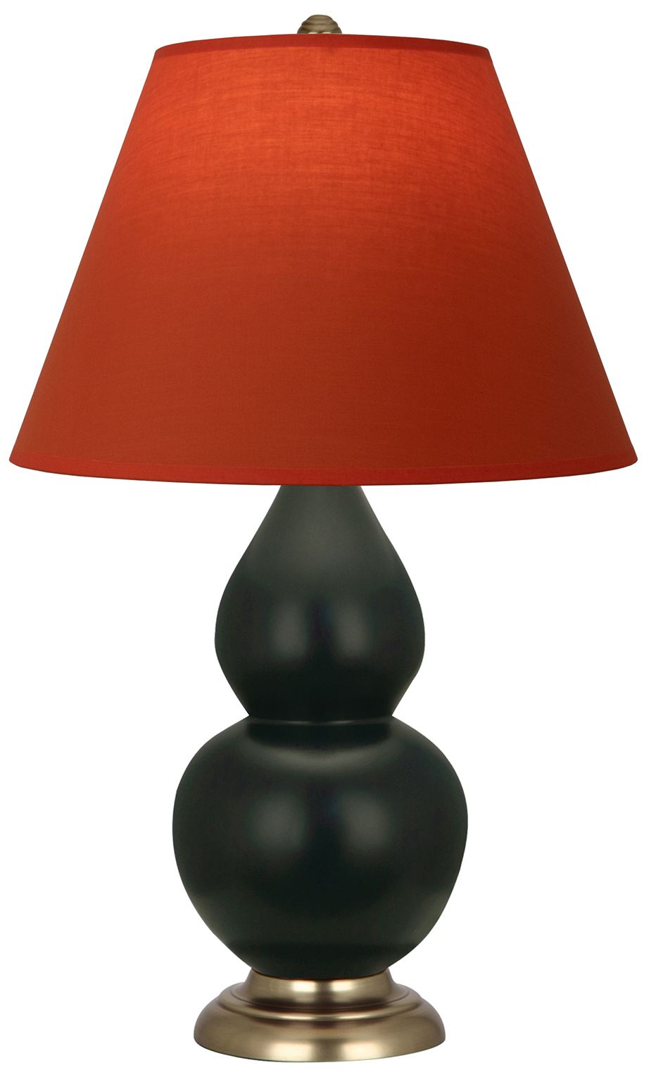 Double Gourd 23"H Obsidian And Brass Lamp w/ Tangerine And Taupe Shade