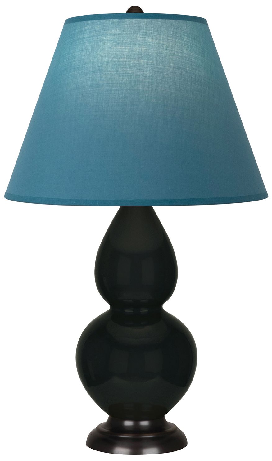 Double Gourd 23"H Obsidian And Bronze Lamp w/ Bright Blue And Gray Shade