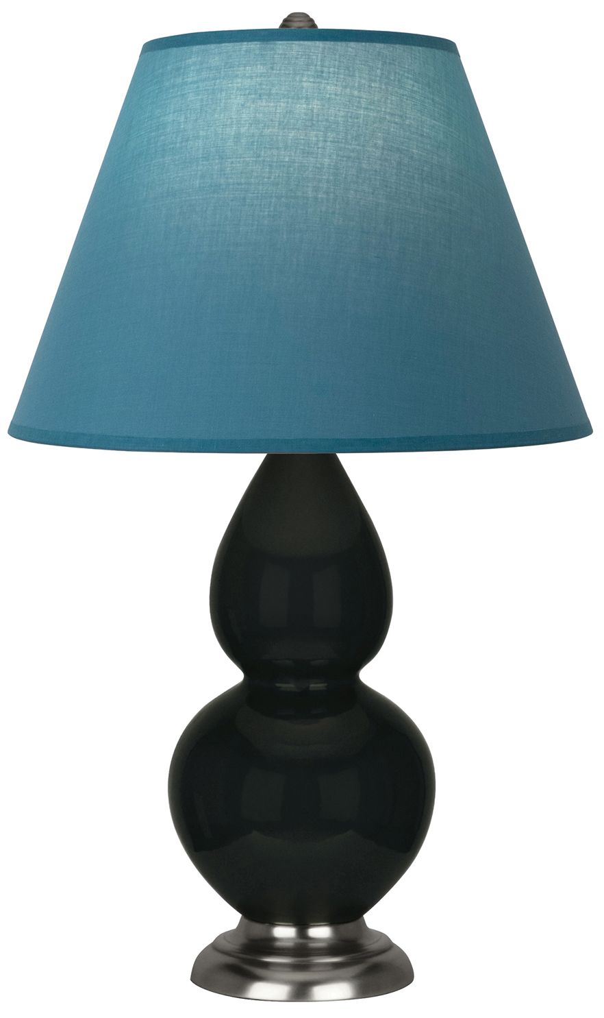 Double Gourd 23"H Obsidian And Silver Lamp w/ Bright Blue And Gray Shade