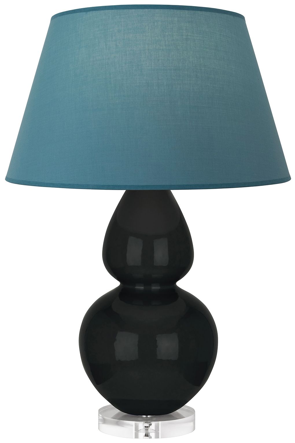 Double Gourd 30"H Obsidian And Lucite Lamp w/ Bright Blue And Gray Shade