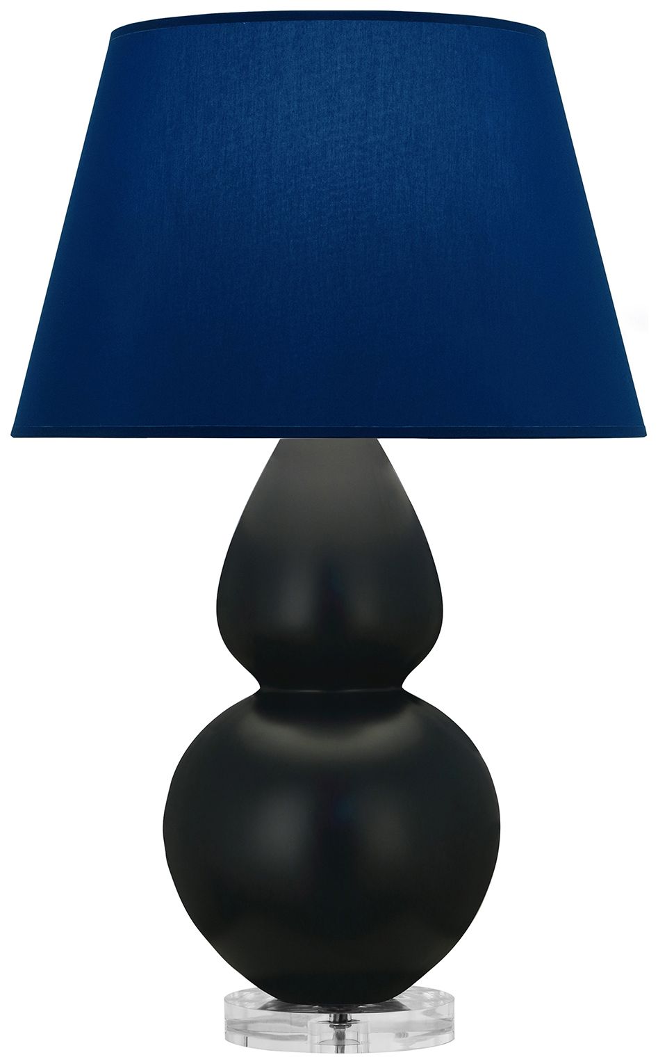 Double Gourd 30"H Obsidian And Lucite Lamp w/ Navy And Gray Shade