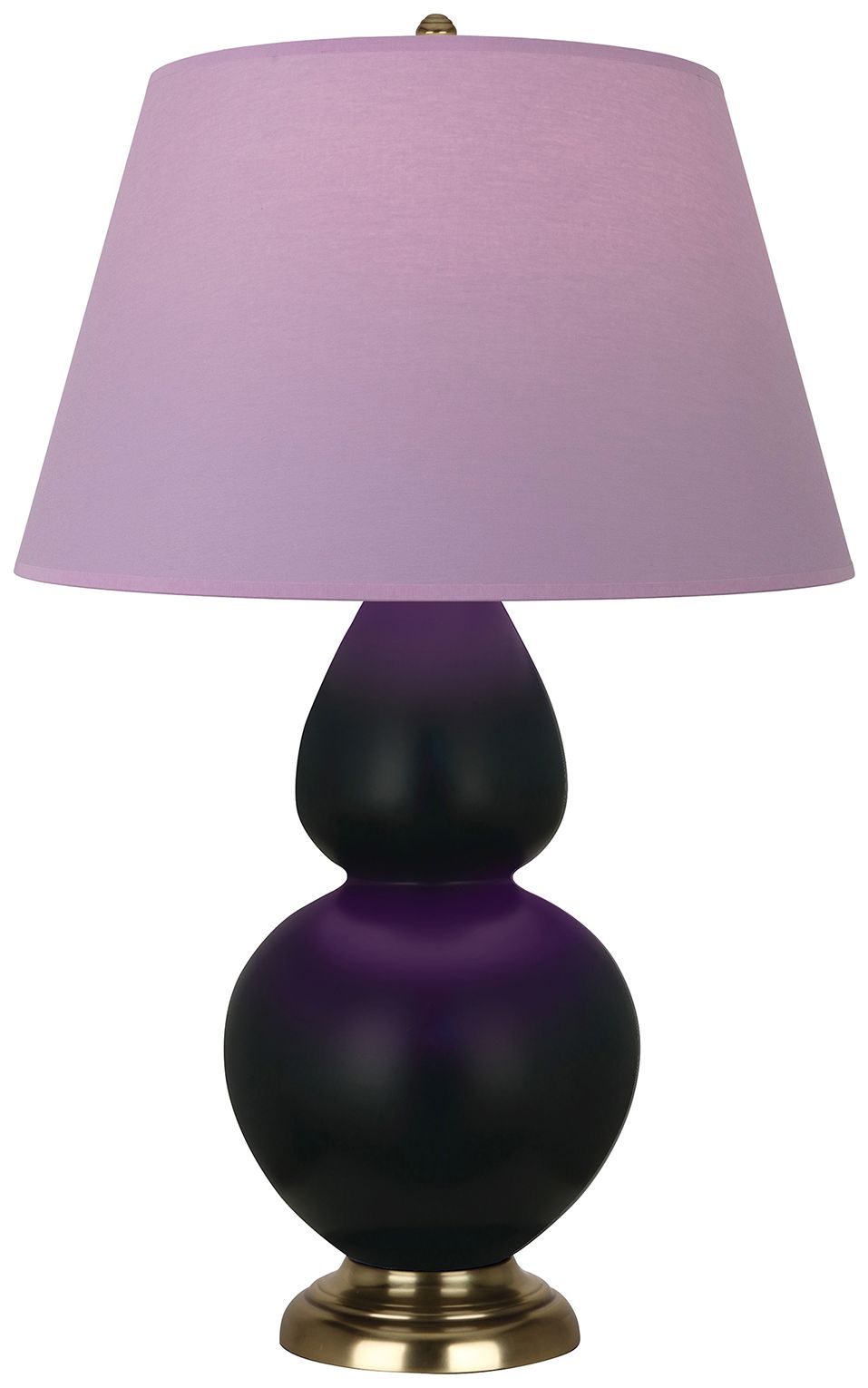 Double Gourd 31"H Obsidian And Brass Lamp w/ Lavender And Plum Shade