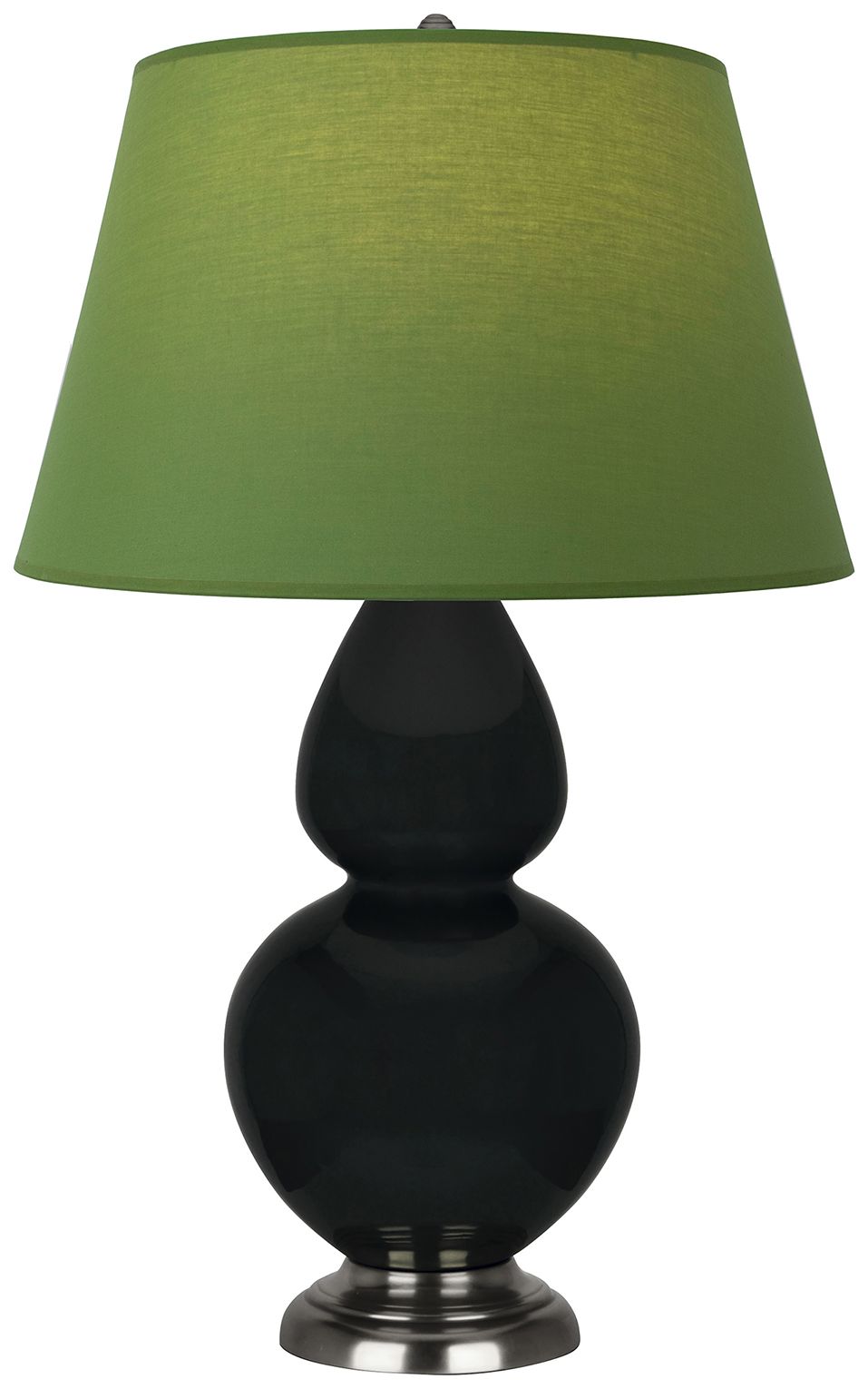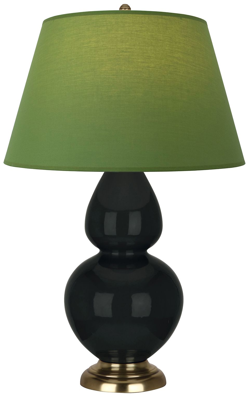 Double Gourd 31"H Obsidian And Brass Lamp w/ Tea Green And Taupe Shade