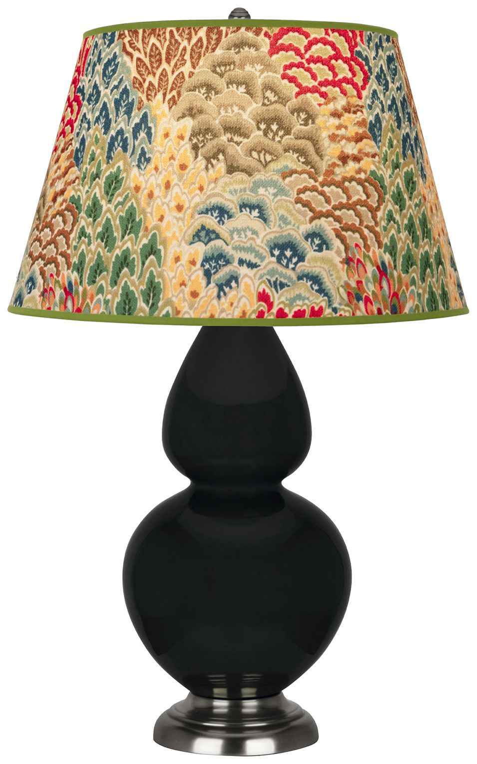 Double Gourd 31"H Obsidian And Silver Table Lamp w/ Fall Floral Shade