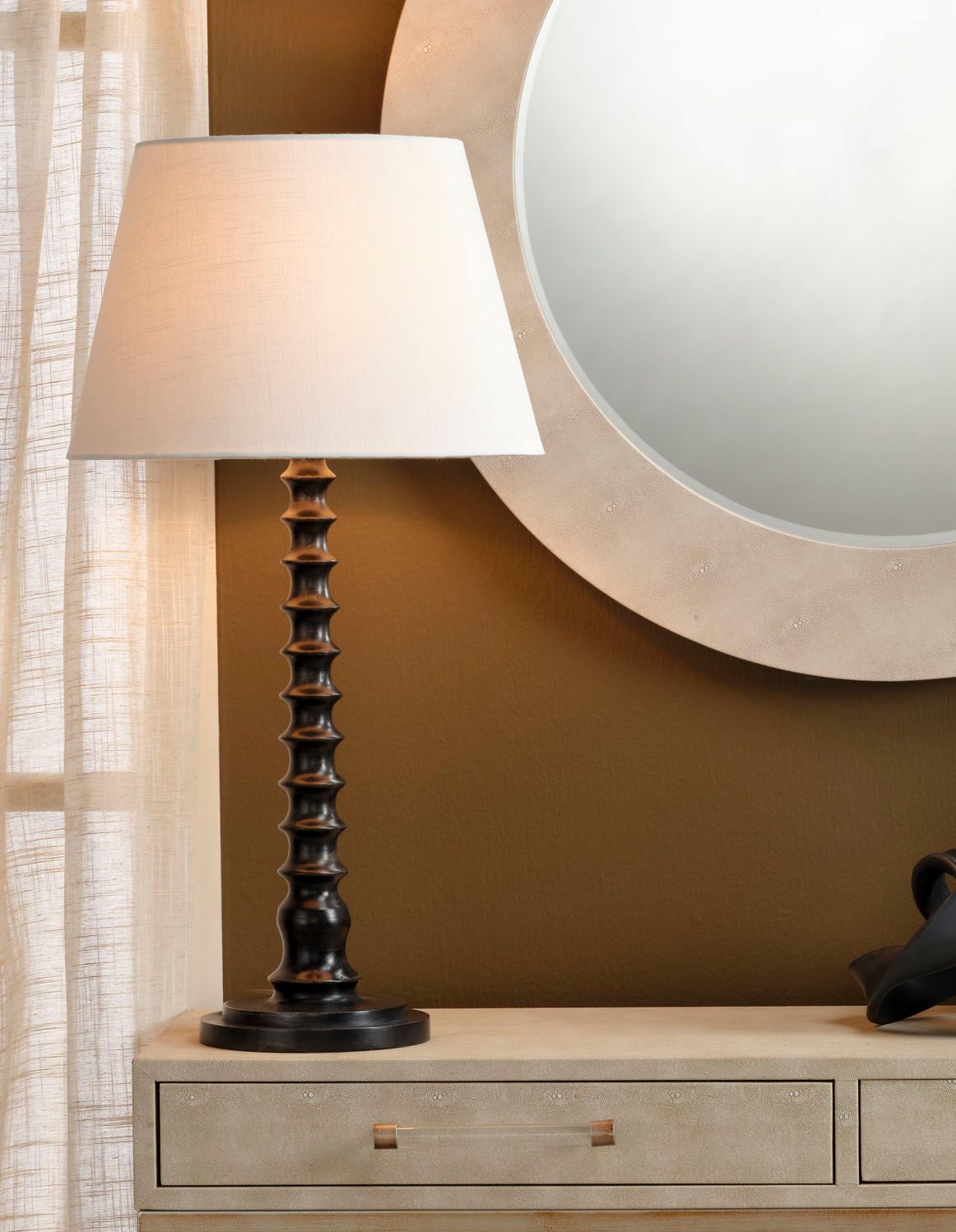 Jamie Young Revolution Wood Table Lamp with Linen Shade, Black