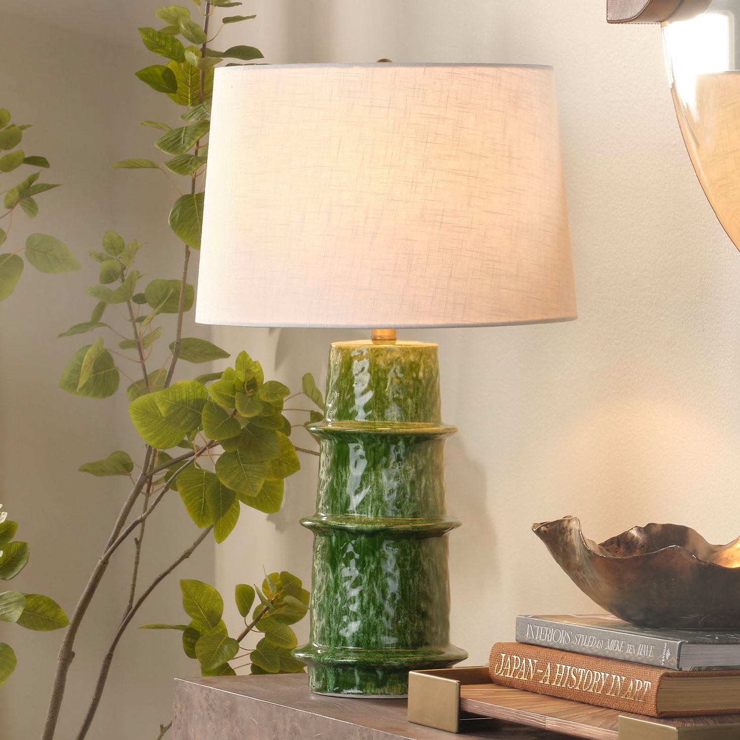 June 30.75" High Mint Glazed Finish Table Lamp with Oyster Linen Shade