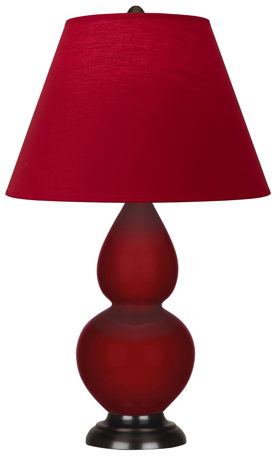 Small Double Gourd 22.75"H Oxblood Silver Lamp w/ Red Black Shade