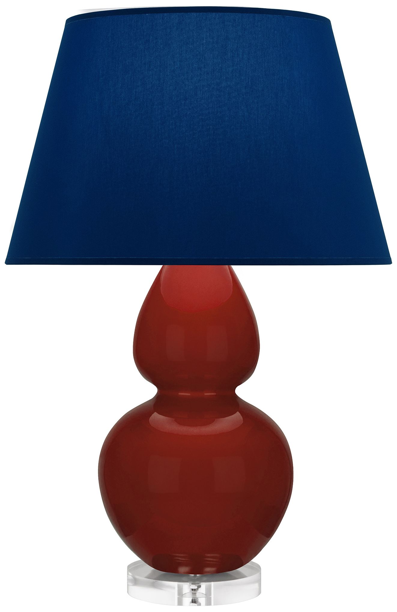 Double Gourd 30"H Oxblood Glazed Lucite Table Lamp w/ Navy Shade