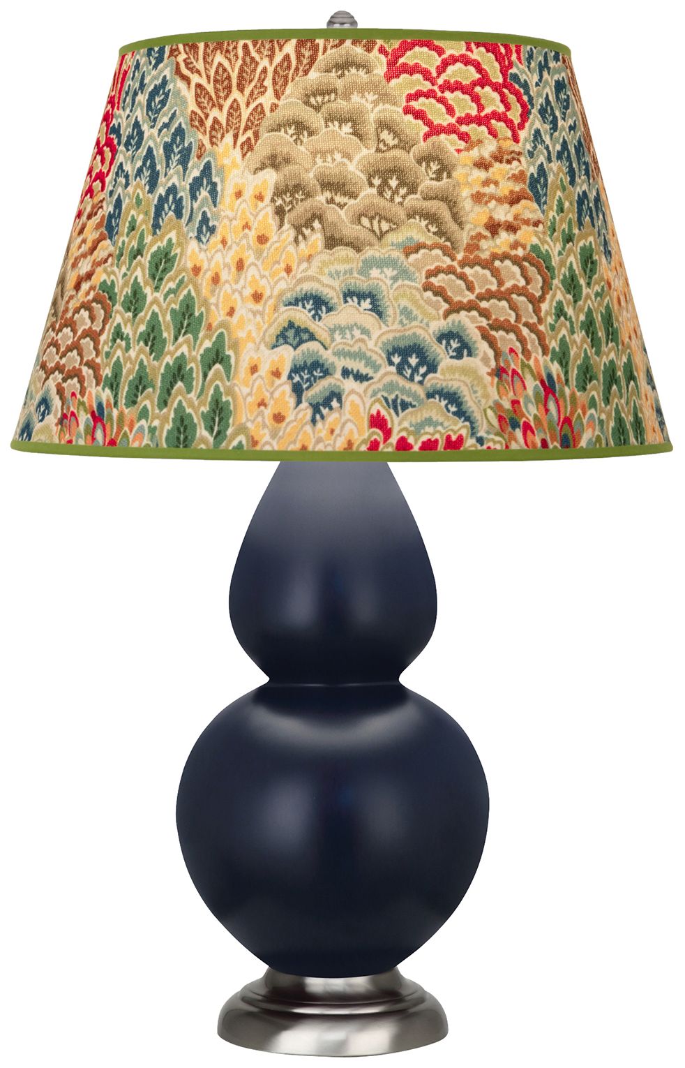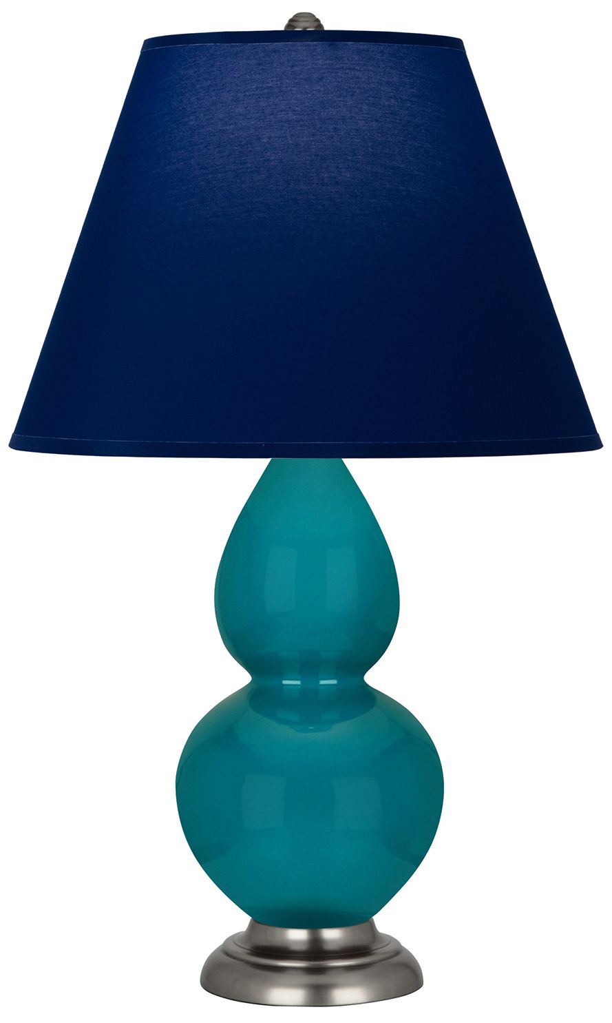 Double Gourd 22.75"H Peacock And Silver Lamp w/ Navy And Gray Shade