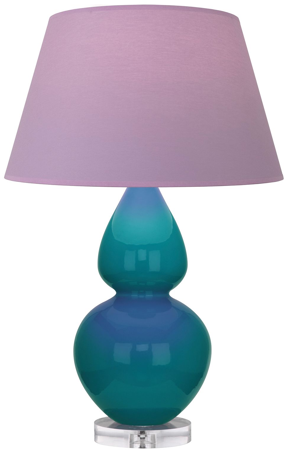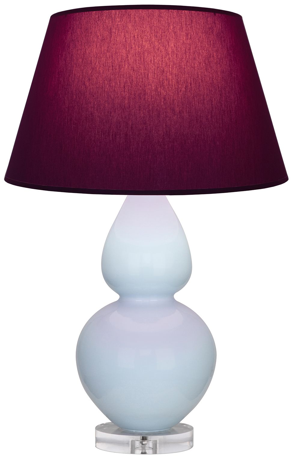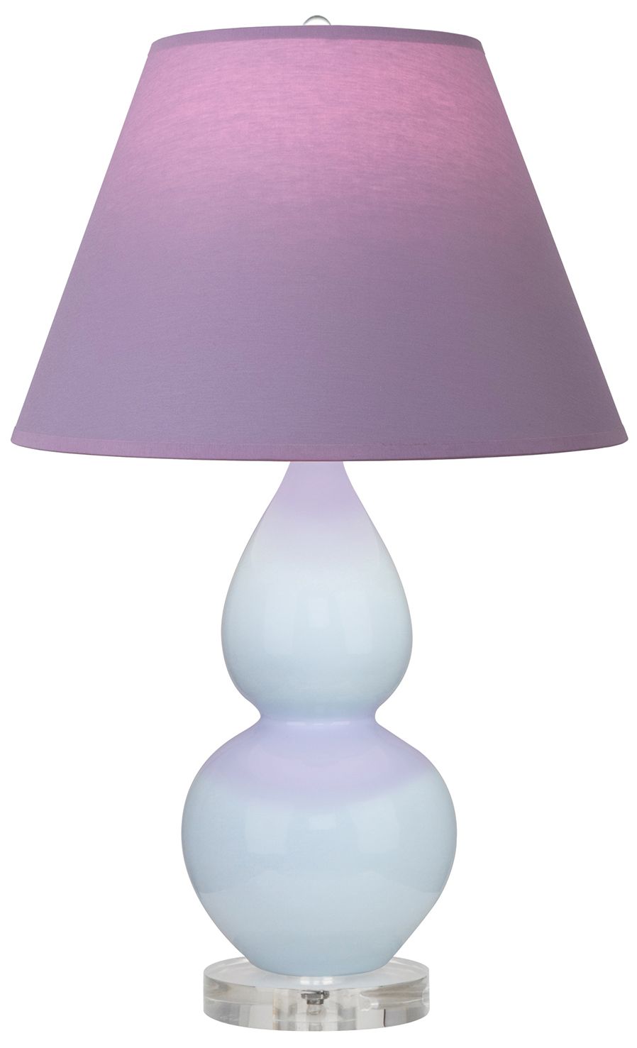 Double Gourd 30"H Baby Blue And Lucite Lamp w/ Plum And Lavender Shade