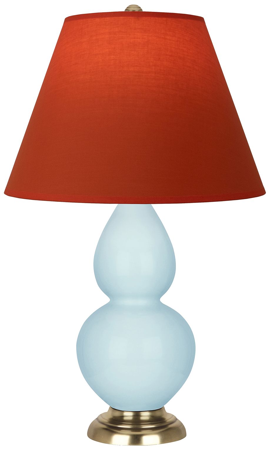 Double Gourd 23"H Baby Blue And Brass Lamp w/ Tangerine And Taupe Shade