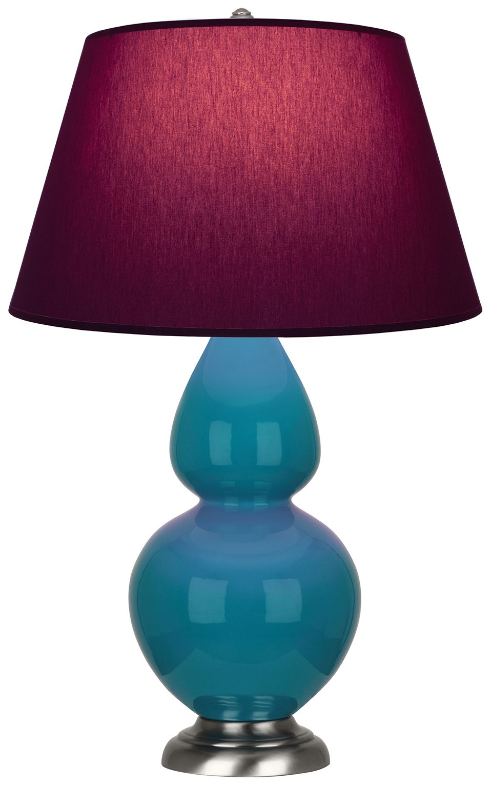 Double Gourd 31"H Peacock And Silver Lamp w/ Plum And Lavender Shade