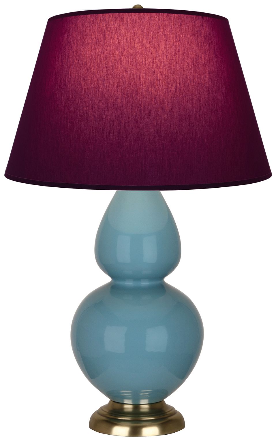 Double Gourd 31"H Steel Blue And Brass Lamp w/ Plum And Lavender Shade