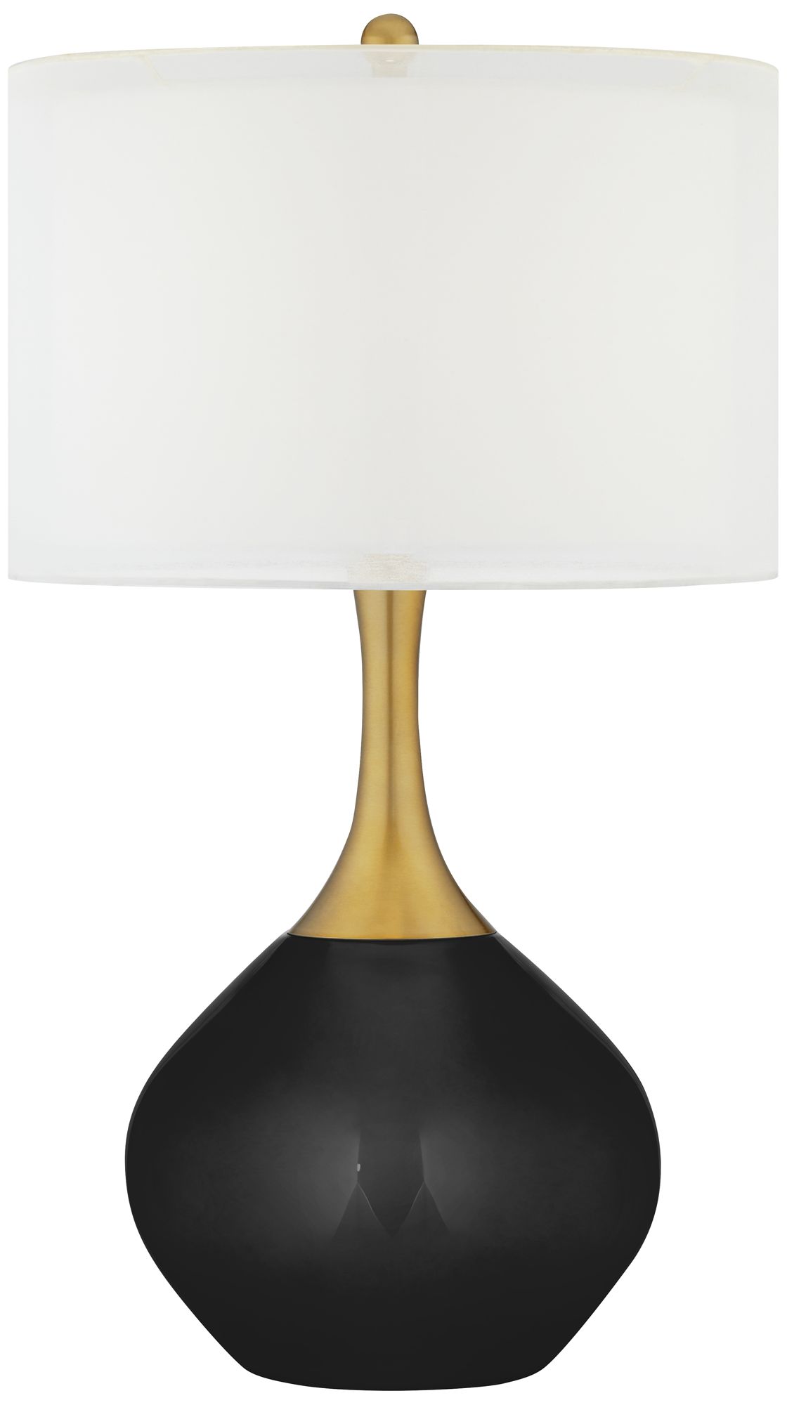 Color Plus Nickki Brass 30 1/2" Tricorn Black Modern Glass Table Lamp