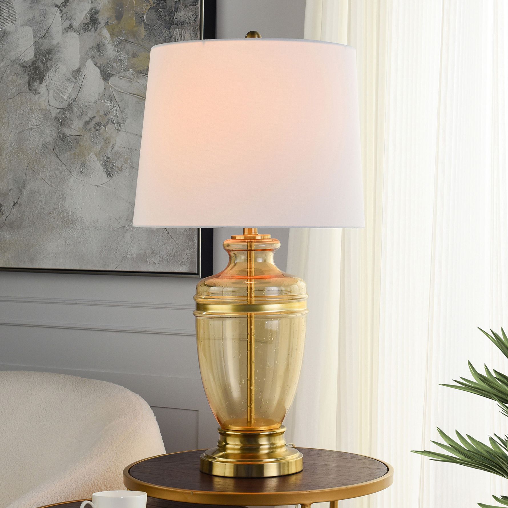 StyleCraft Glass 33.5" High Subal Gold Table Lamp with White Shade
