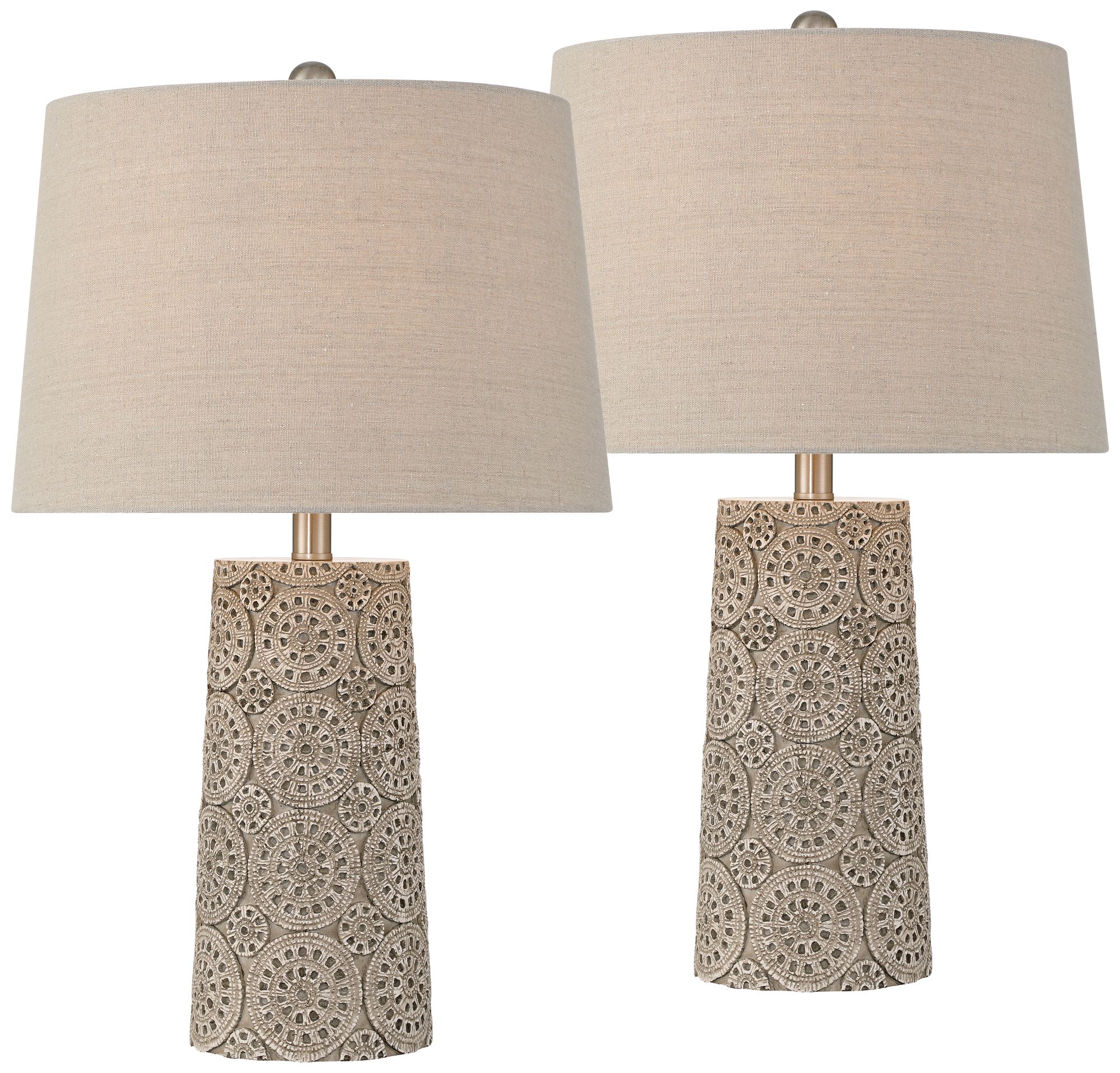 Lavinia 24 1/2" High Carved Stone Motif Table Lamp Set of 2