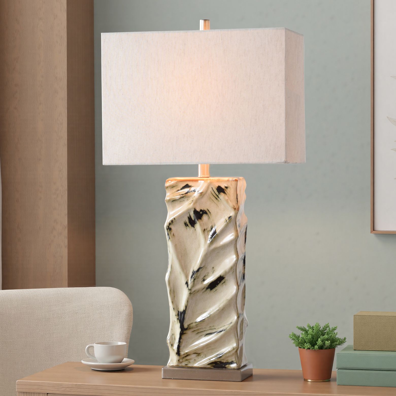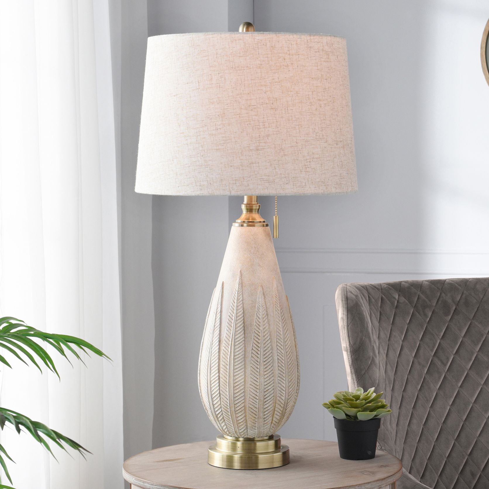 Jamie Young Sycamore Resin Table Lamp with Linen Shade