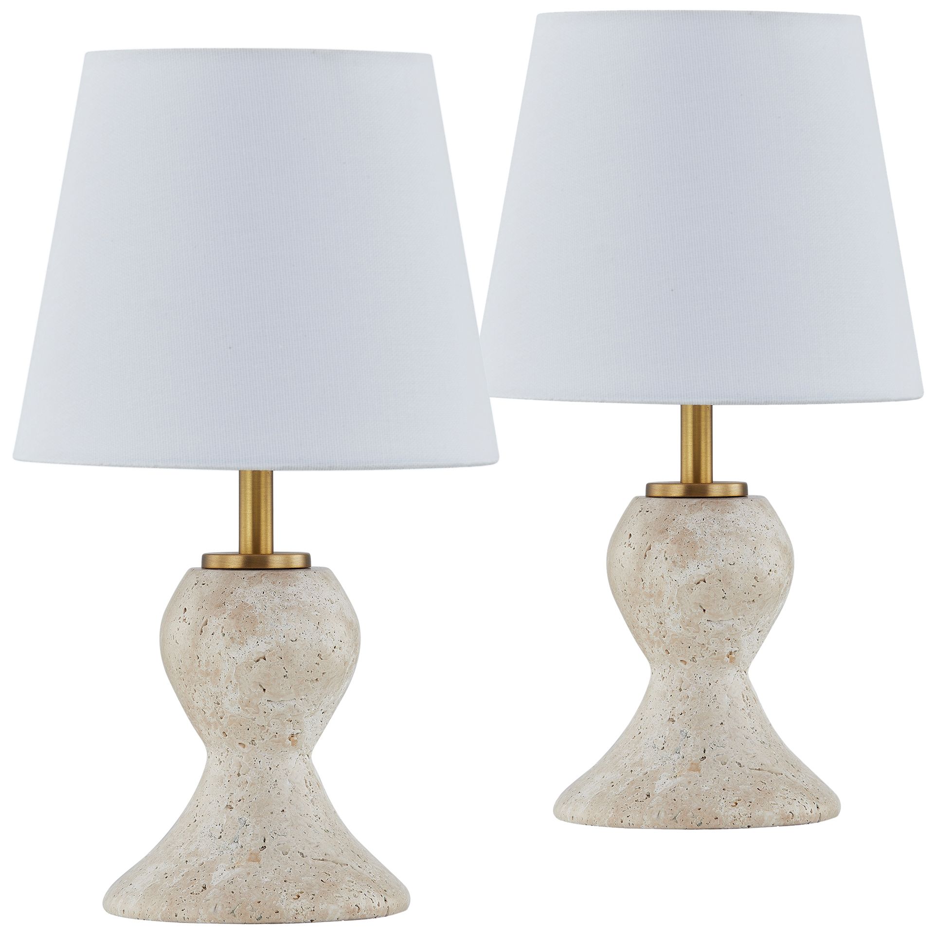 Forty West Hansel 12.5" Travertine Mini Lamp Set of 2