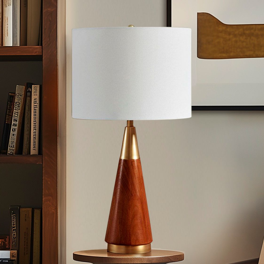 Simple Designs 17.13" Metal Modern Table Lamp with Drum Fabric Shade, White
