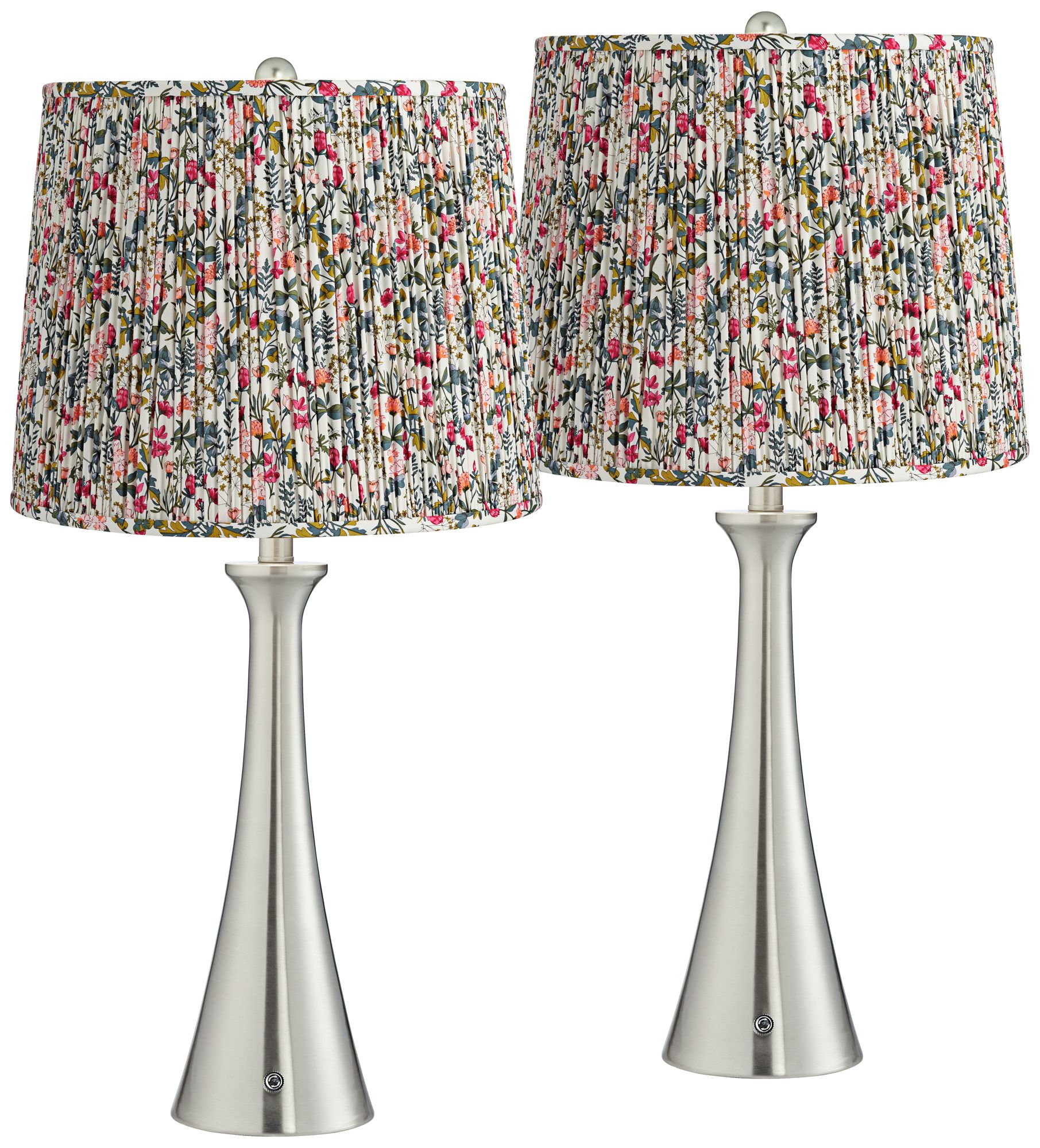 Karl Brushed Nickel USB Table Lamps Set of 2 with Meadow Shades
