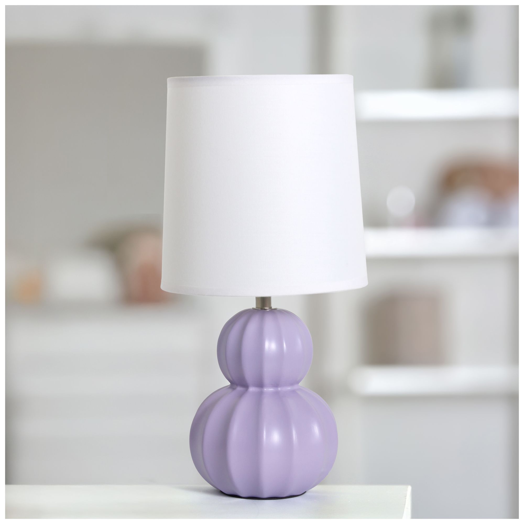 Simple Designs 12.5" Stacked Gourd Ceramic Tb Lamp, Lavender, WHT Fbc Shade