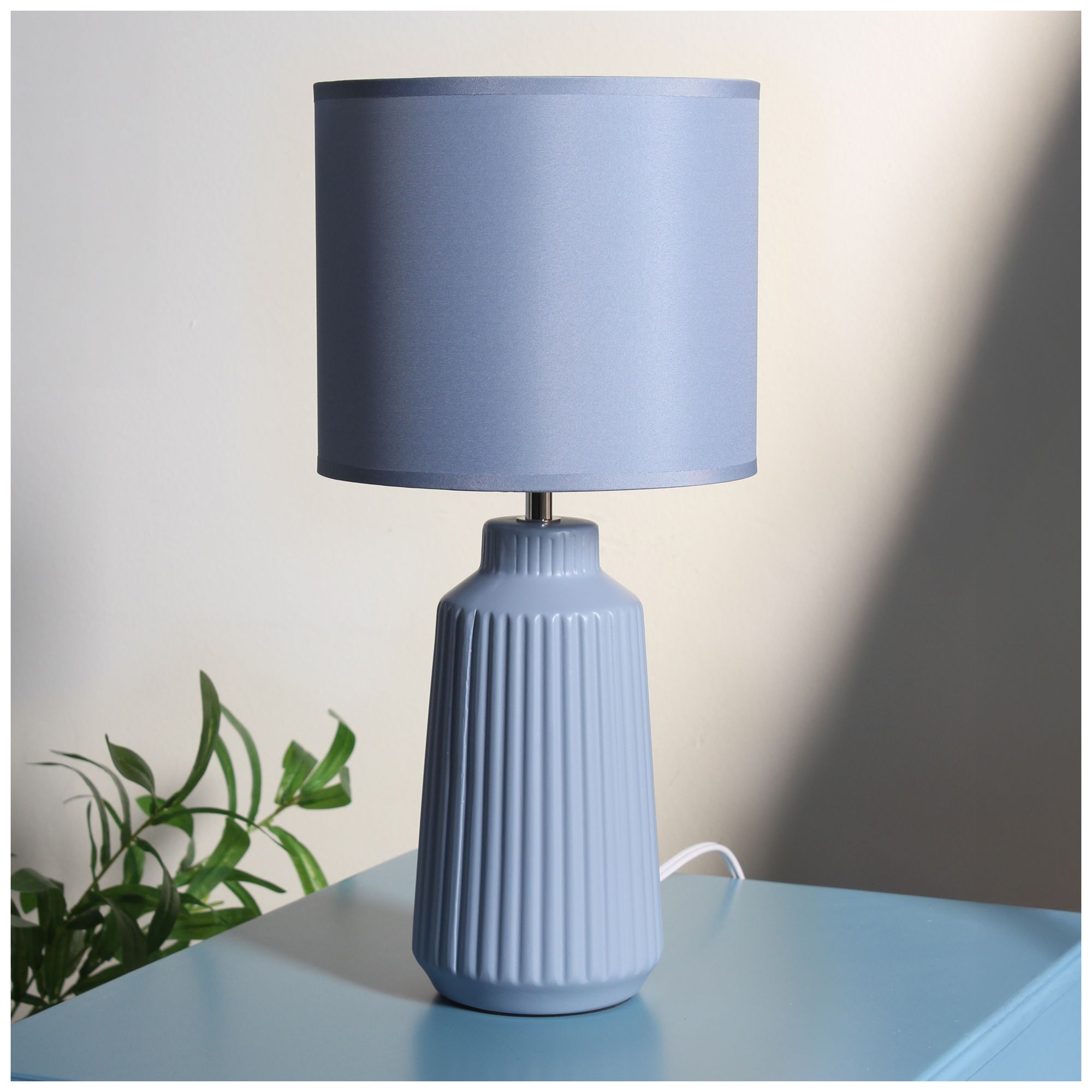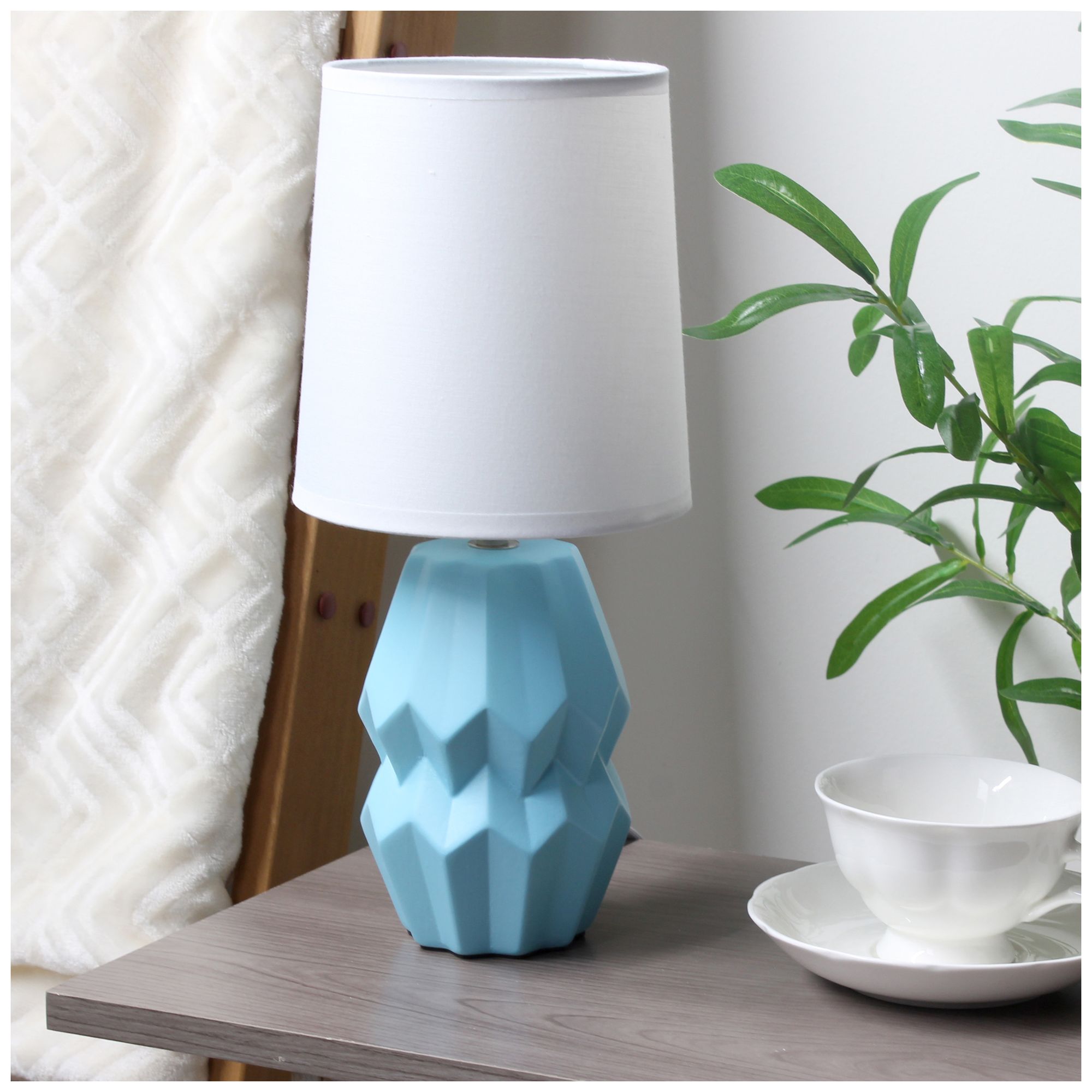 Simple Designs 12.5" Chic Glow Ceramic Table Lamp, Wht Fbc Shade, Baby Blue
