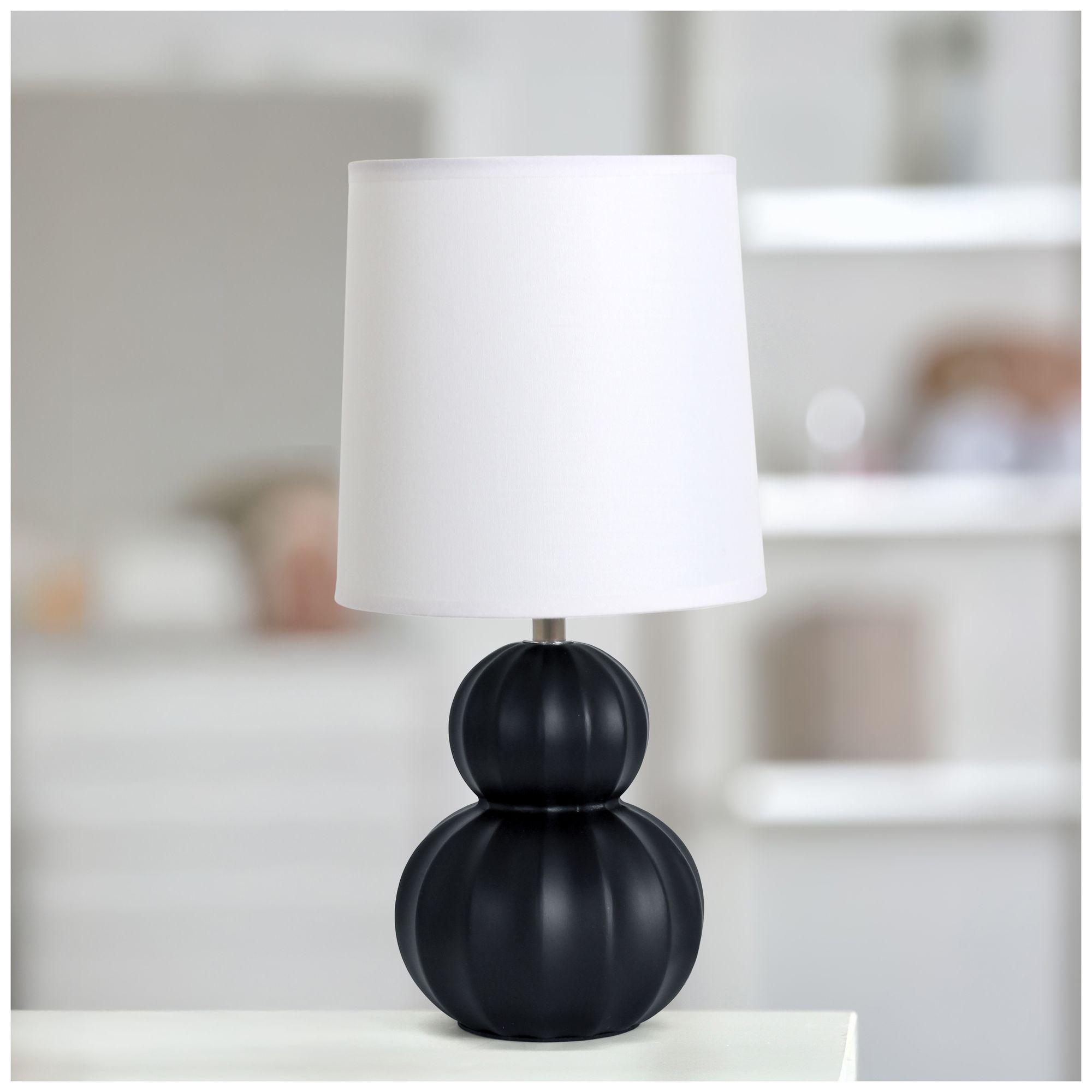 Simple Designs 12.5" Stacked Gourd Ceramic Tb Lp, Black, White Fabric Shade