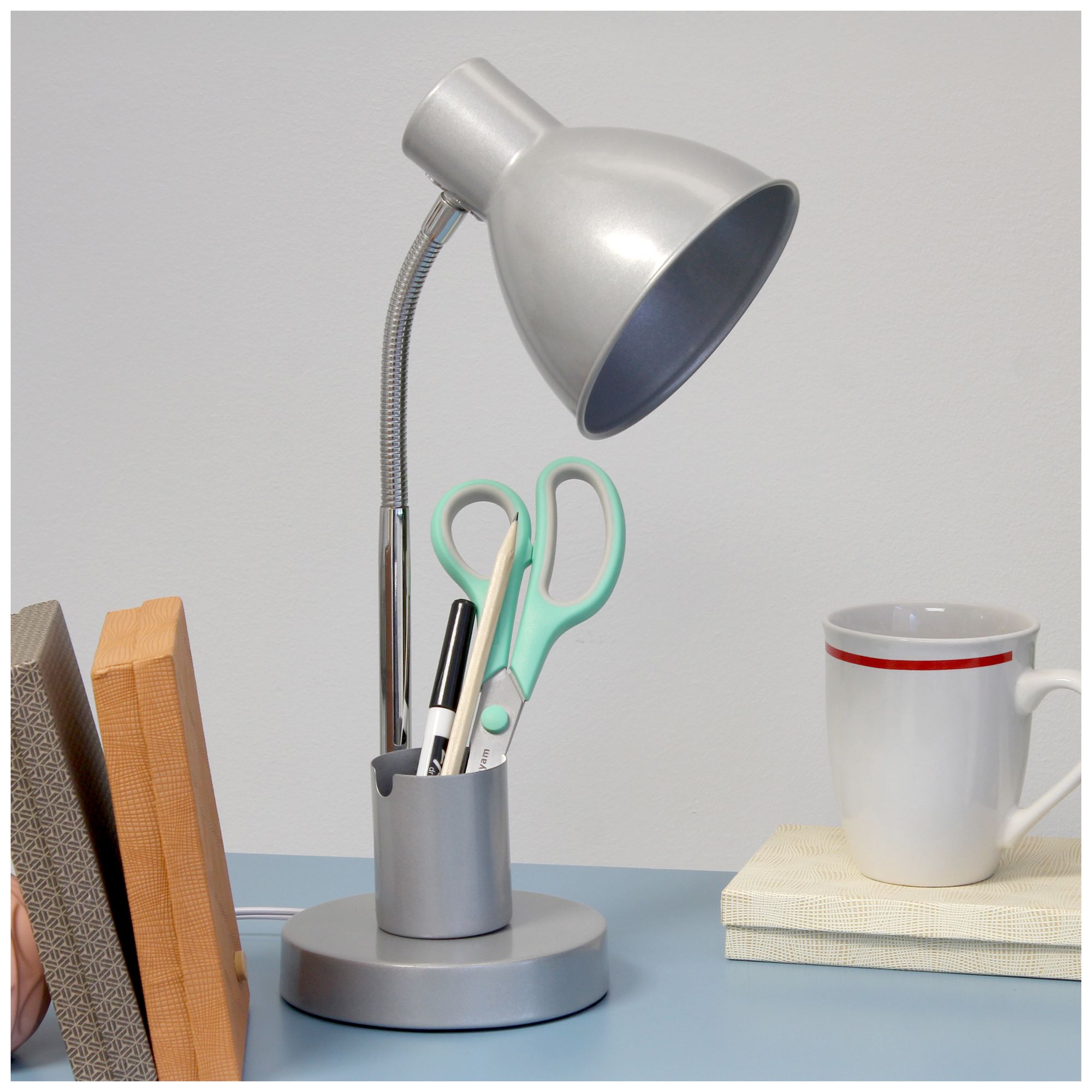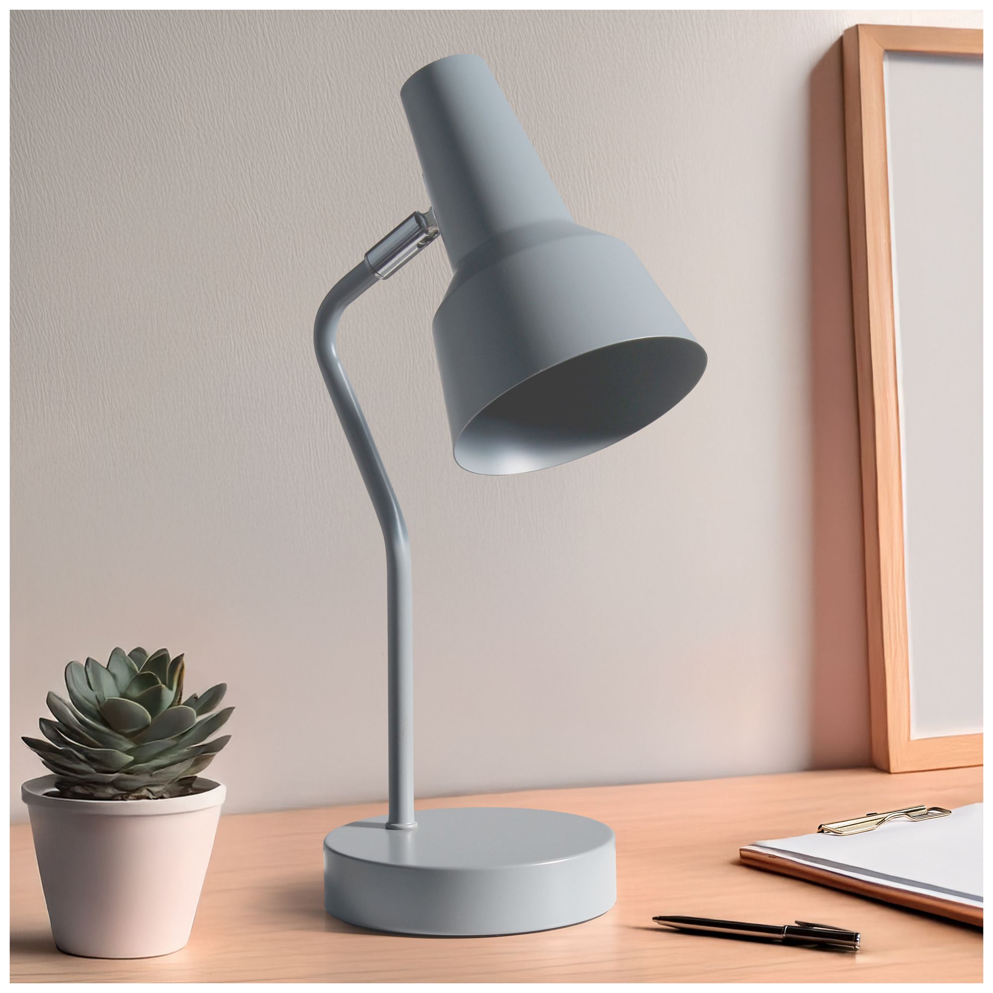 Simple Designs 15.2" Metal Cone Shade Desk Lamp, Adj Shade, Gray