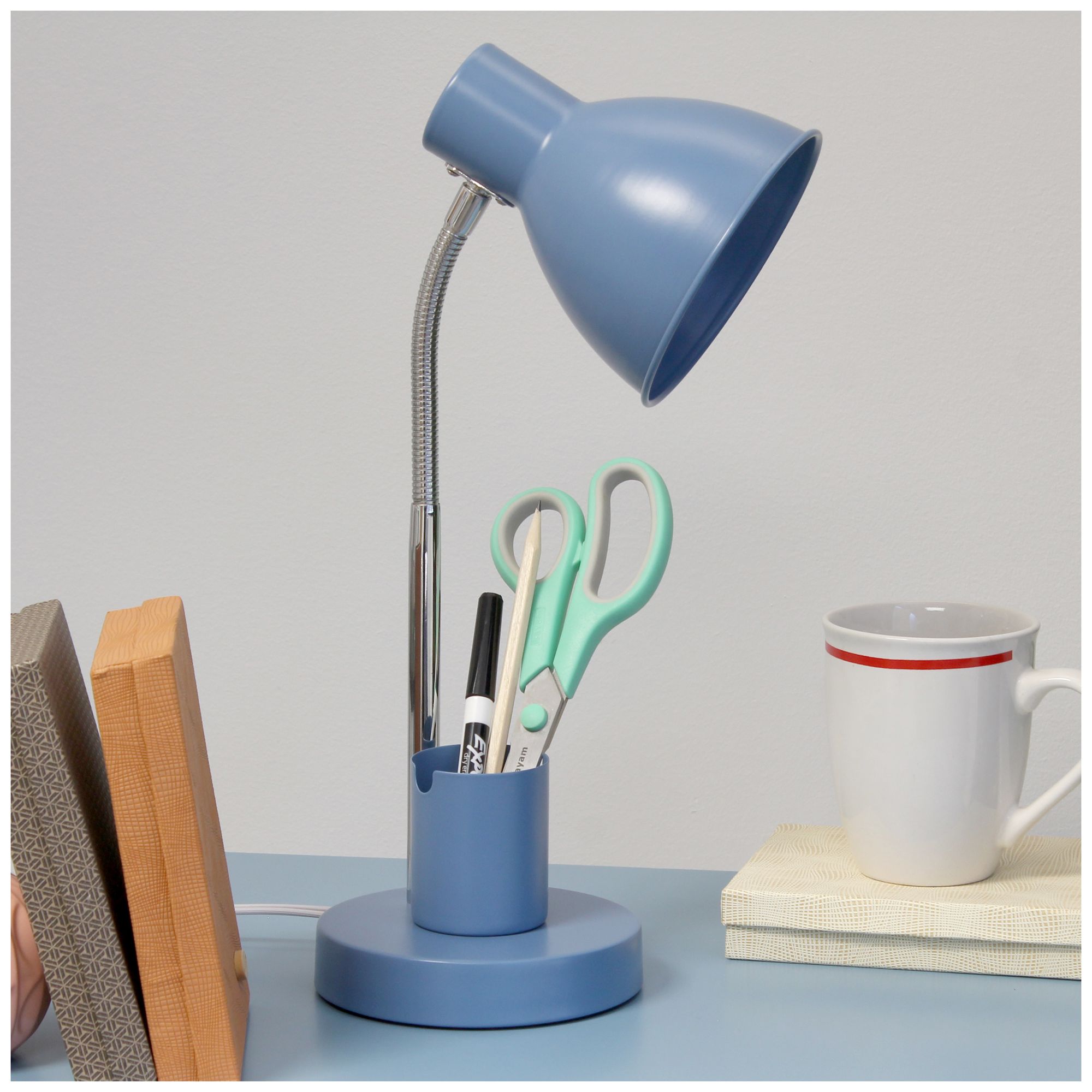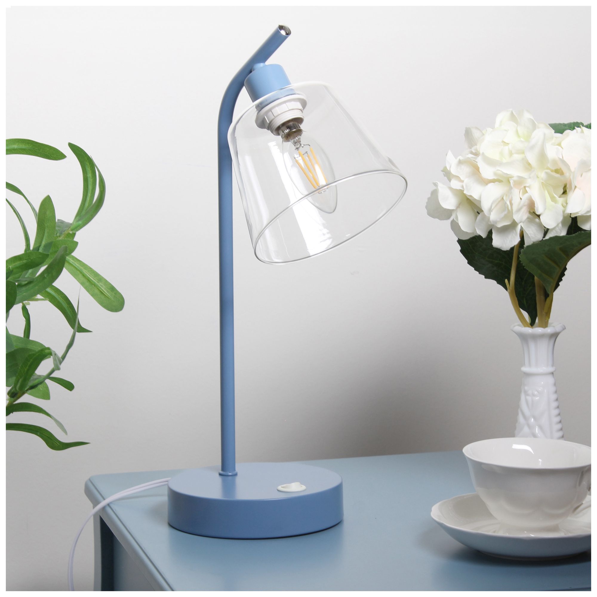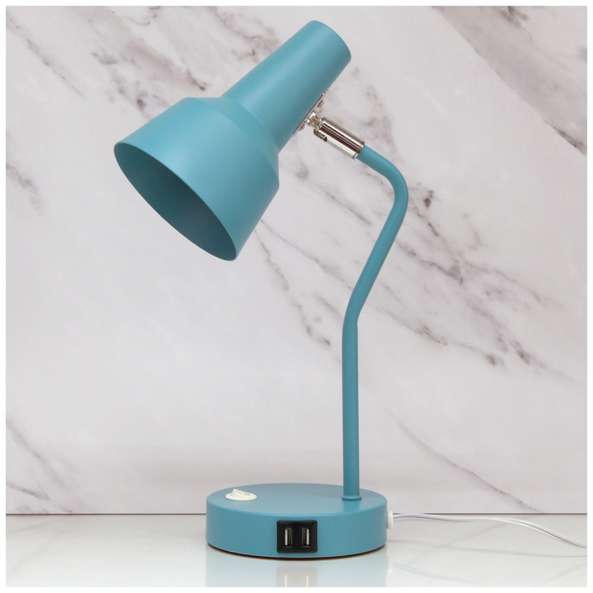 Simple Designs 15.75" Industrial Mtl Desk Lp, Glss Shade, 2 USB Ports, Blue