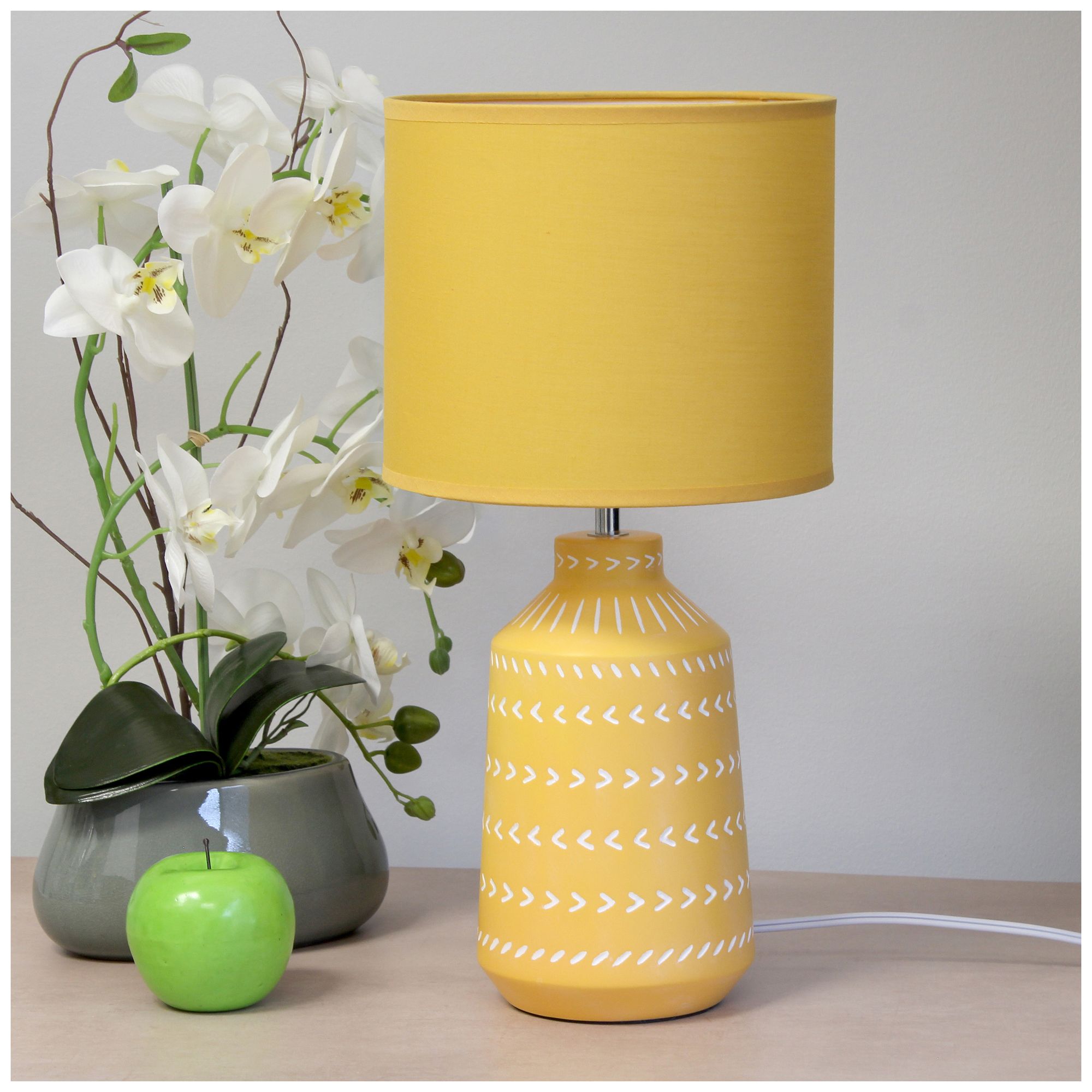 Simple Designs 16.93" Glow & Flow Boho Patterned Ceramic Table Lamp, Yellow
