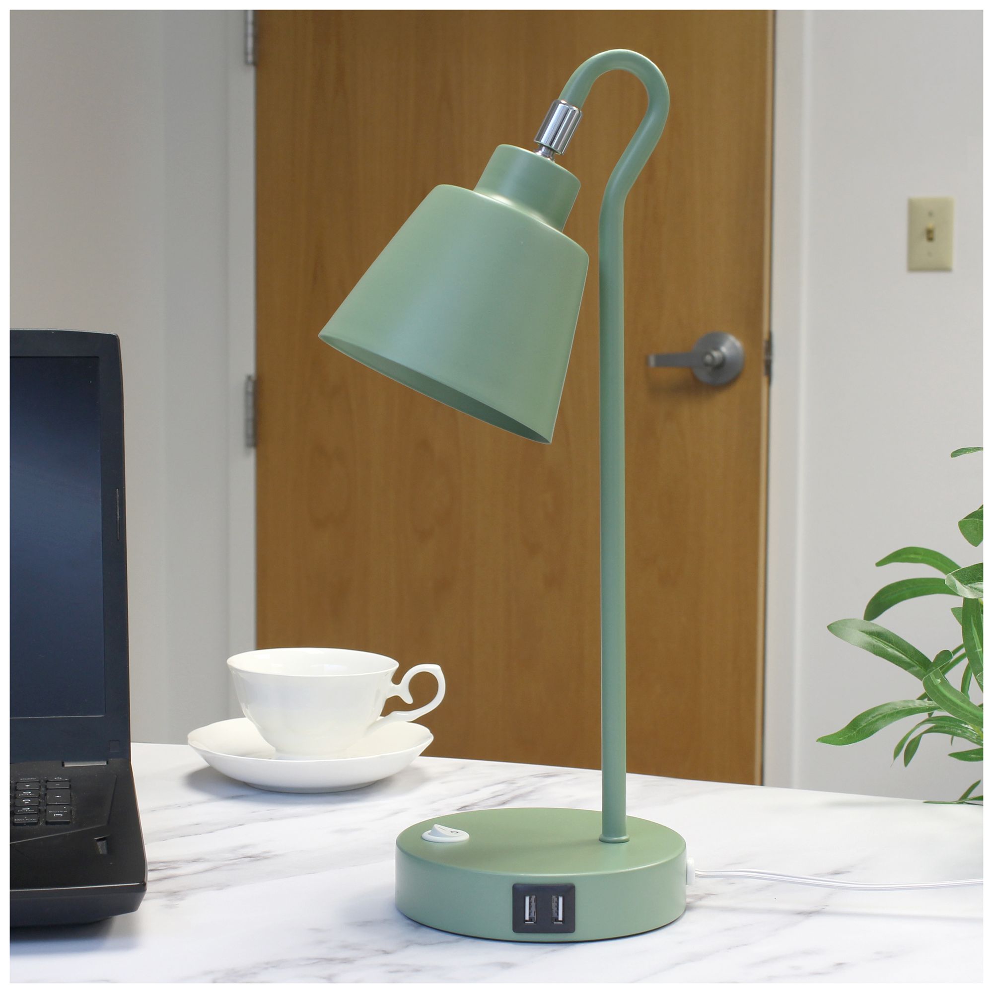 Simple Designs 16" Metal Desk Task Lp, Adj Shade, Dual USB Ports, Sage GRN