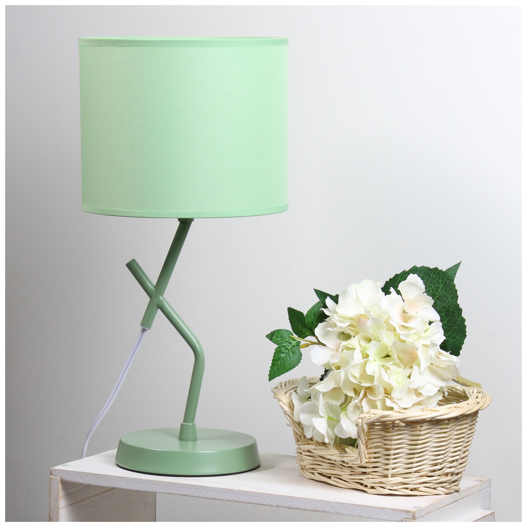 Simple Designs 17.13" Metal Modern Table Lamp, Drum Fabric Shade, Green