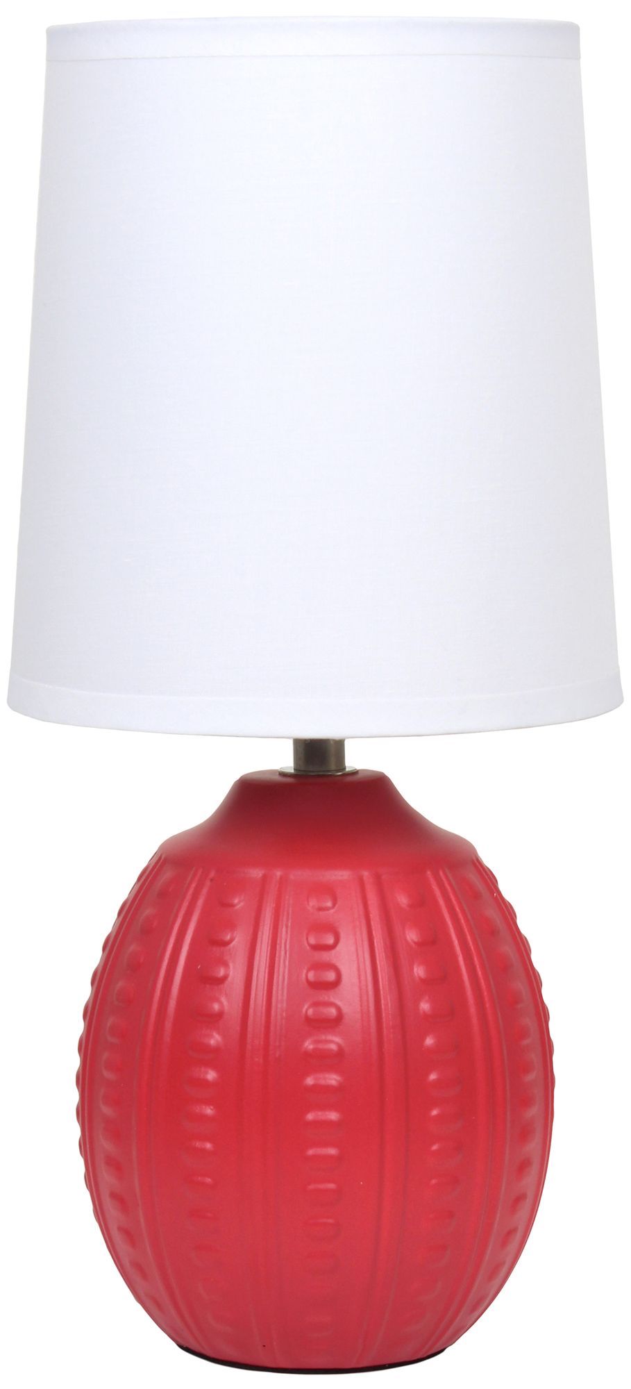Simple Designs 12.5" Mini Textured Oval Table Lamp, White Fabric Shade,Red