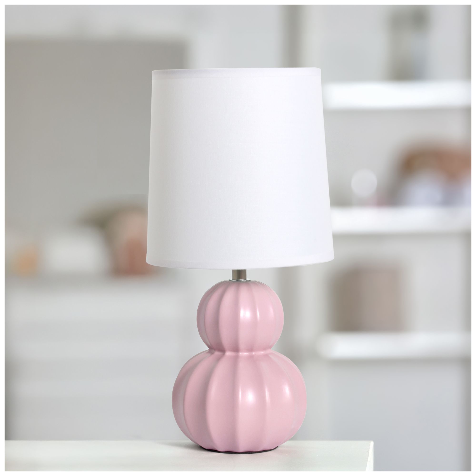 Simple Designs 12.5" Stacked Gourd Ceramic Table Lamp, Pink, Wht Fbc Shade