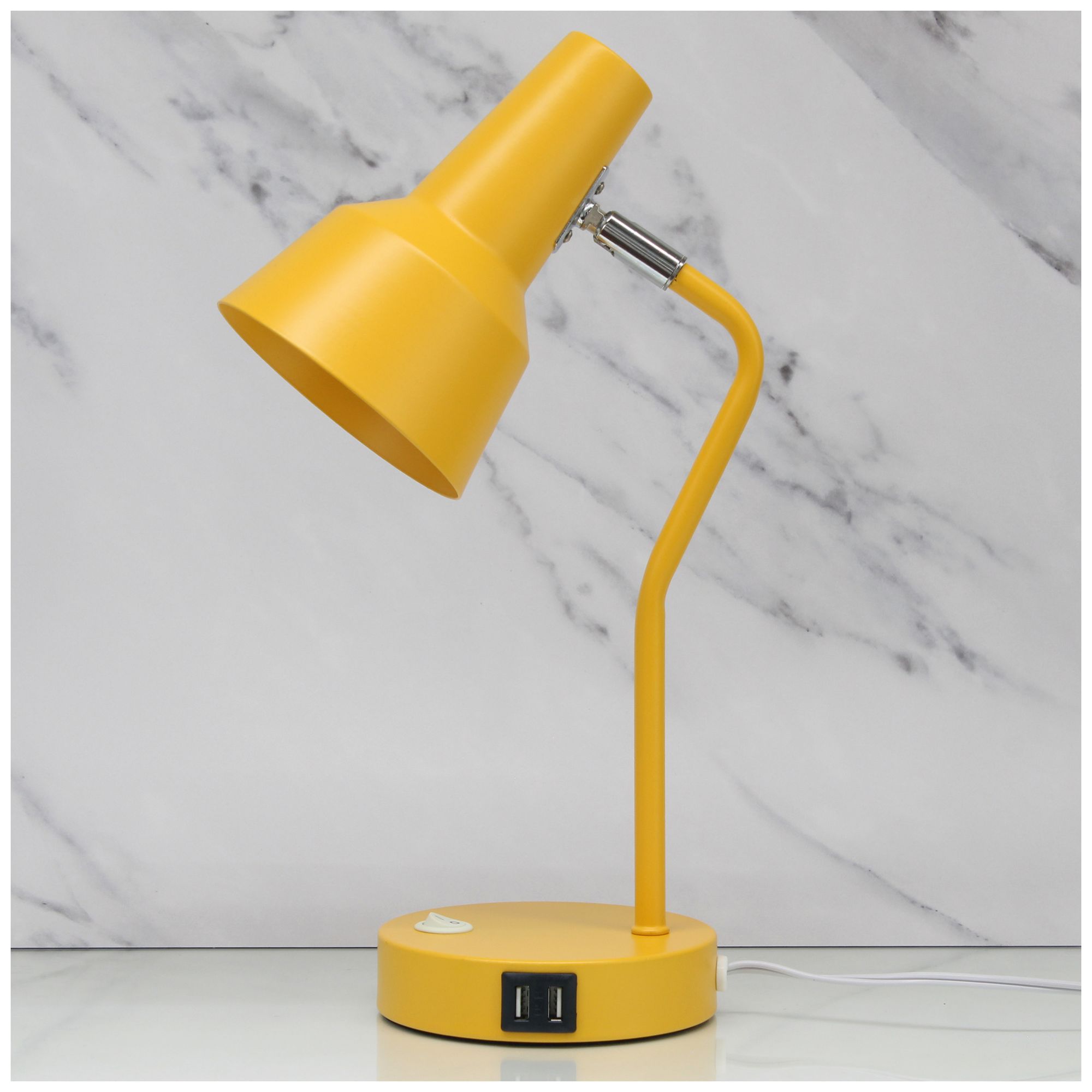 Simple Designs 15.2" Sleek Desk Lp, Adj Shade, Dual USB Ports, Yellow