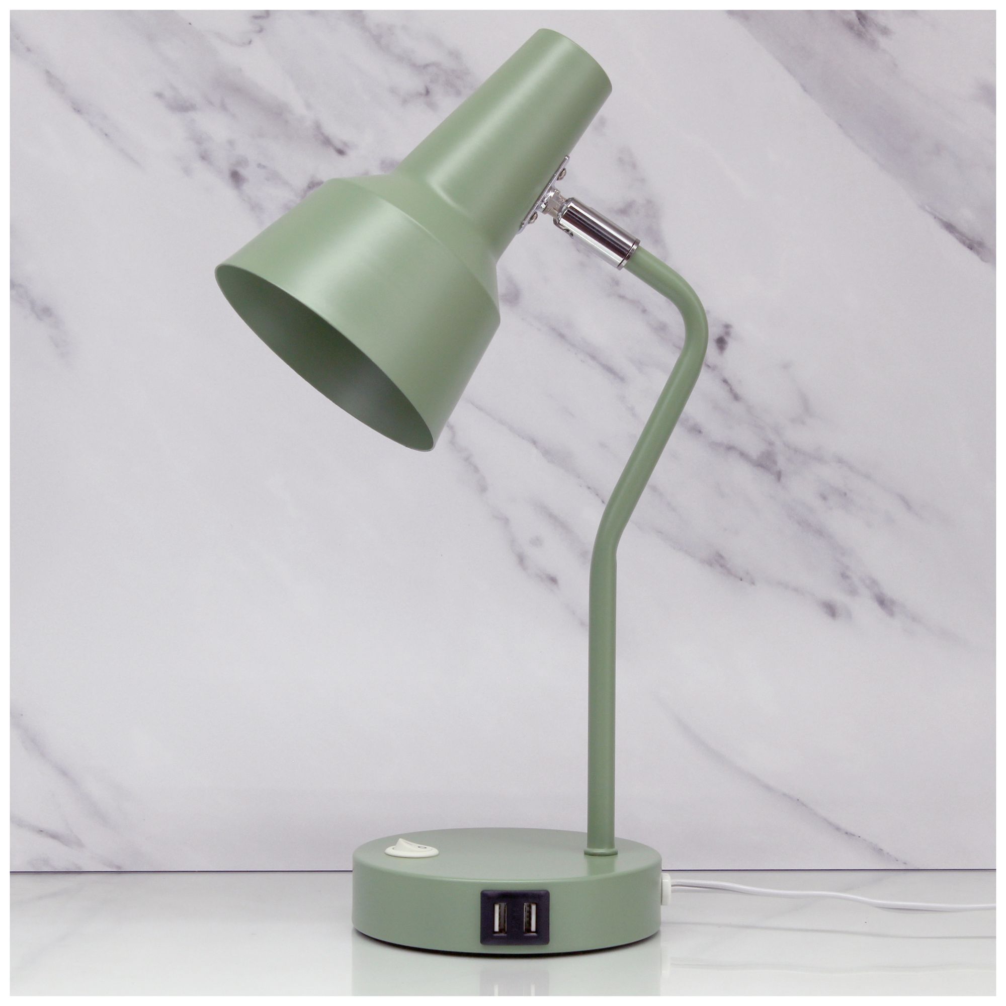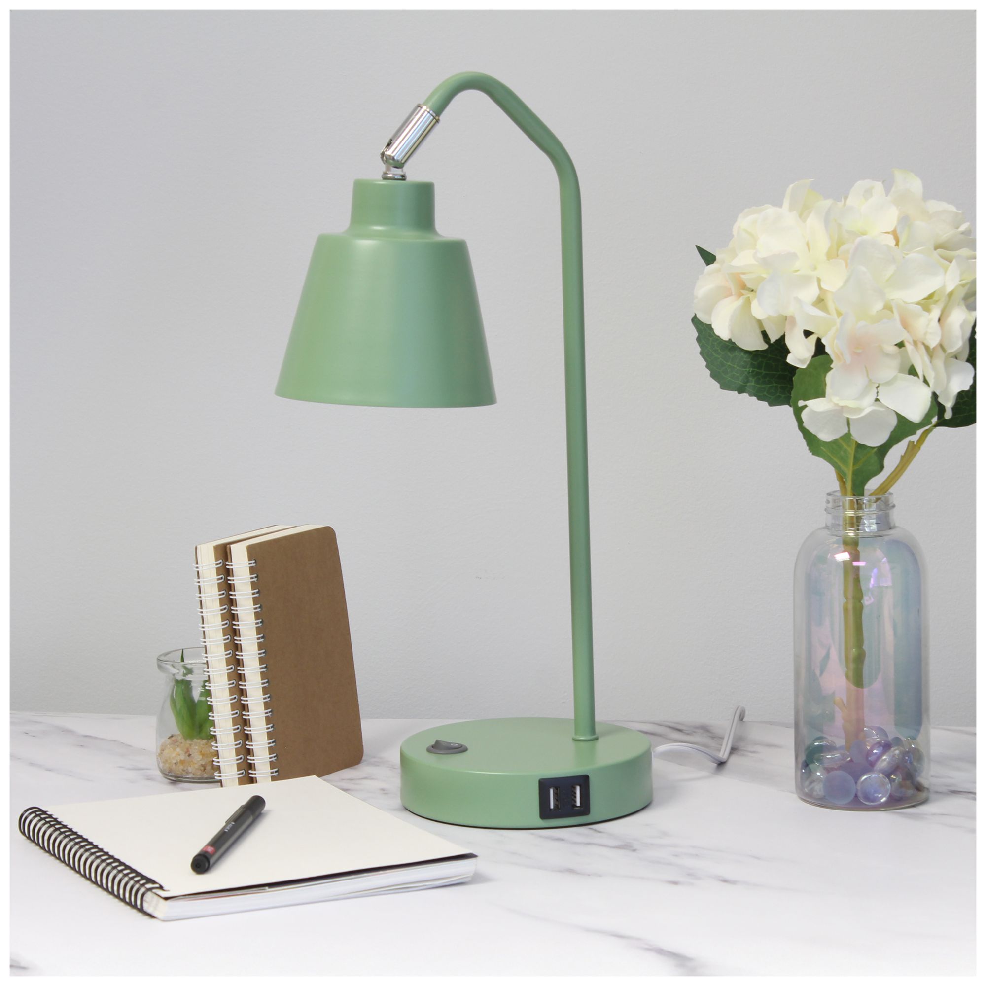 Simple Designs 15.2" Sleek Mtl Desk Lp, Adj Shade, Dual USB Ports, Sage GRN