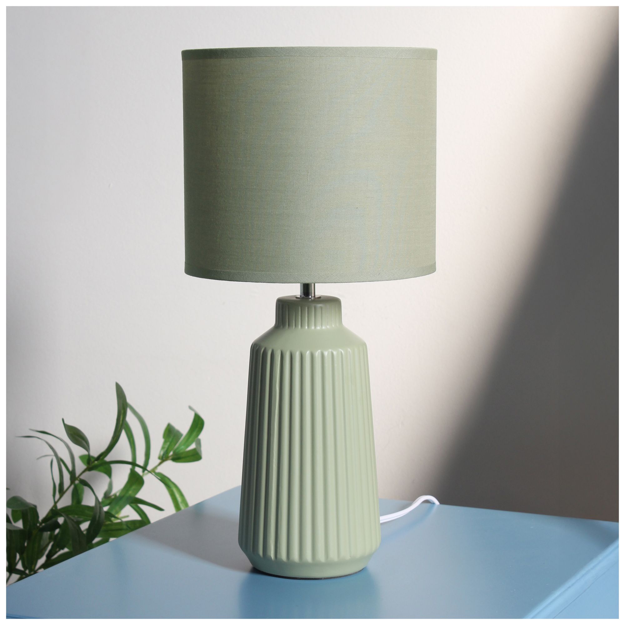 Simple Designs 15.94" Glow & Flow Ceramic Tb Lamp, Mono Fabric Shade, Olive