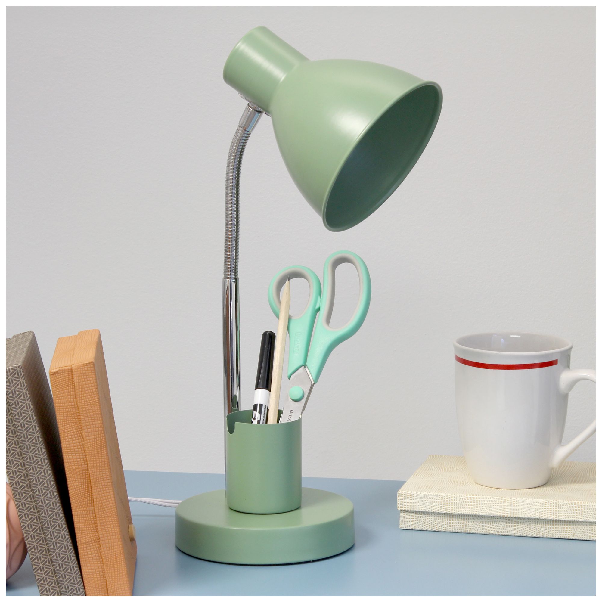 Simple Designs 16.22" Adjustable Metal Desk Task Lamp, Organizer, Sage GRN