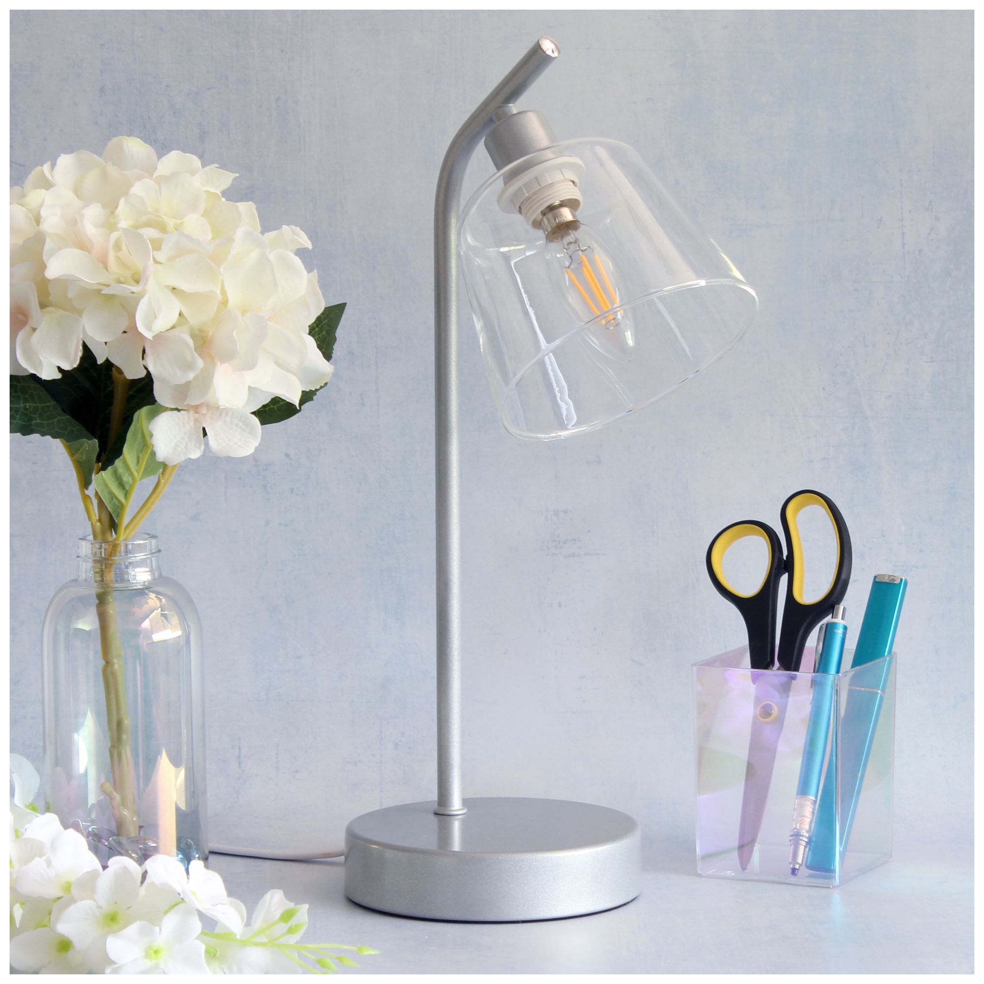 Simple Designs 16" Industrial Metal Desk Lamp, Clear Glass Shade, Silver