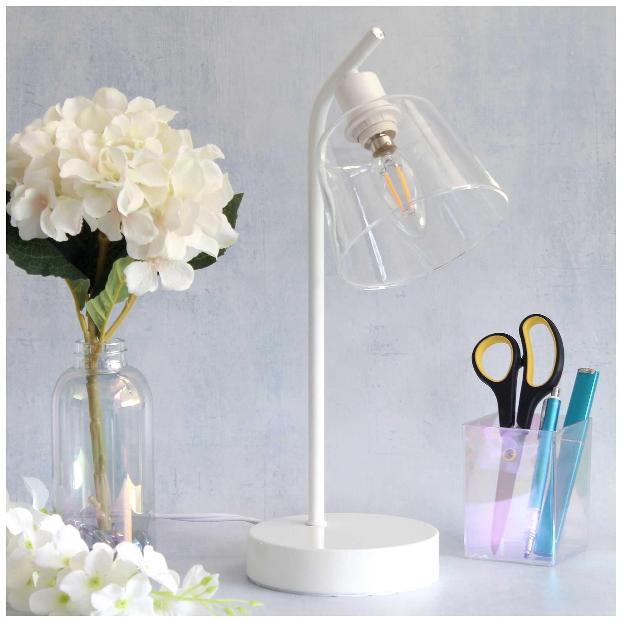 Simple Designs 16" Industrial Metal Desk Lamp, Clear Glass Shade, White