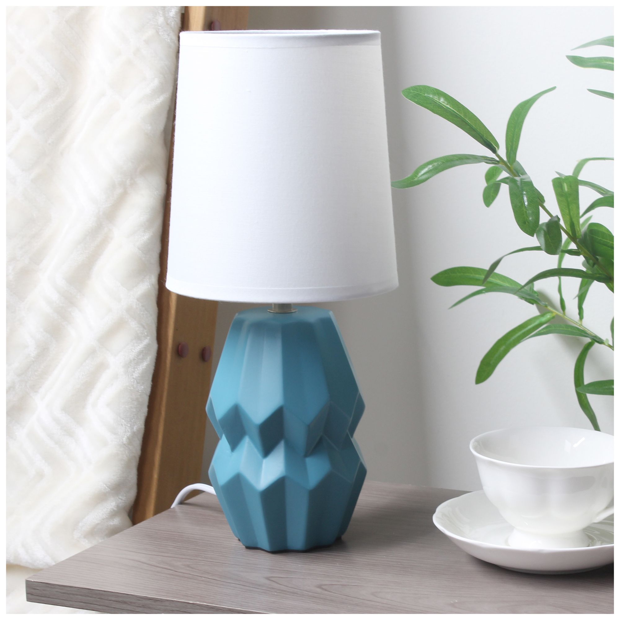 Simple Designs 12.5" Chic Glow Ceramic Table Lamp, White Fabric Shade, Teal