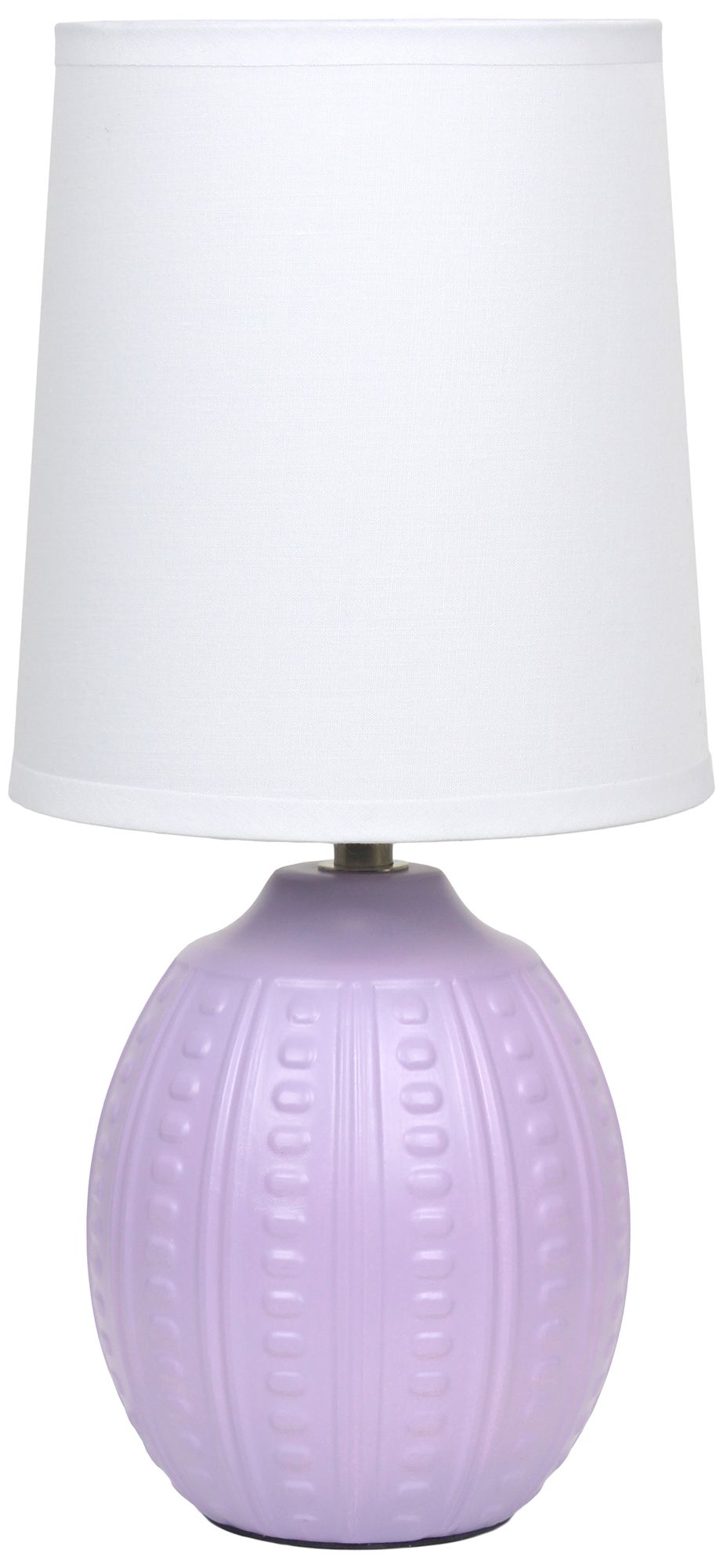 Simple Designs 12.5" Mini Oval Table Lamp,White Fabric Shade, Lavender