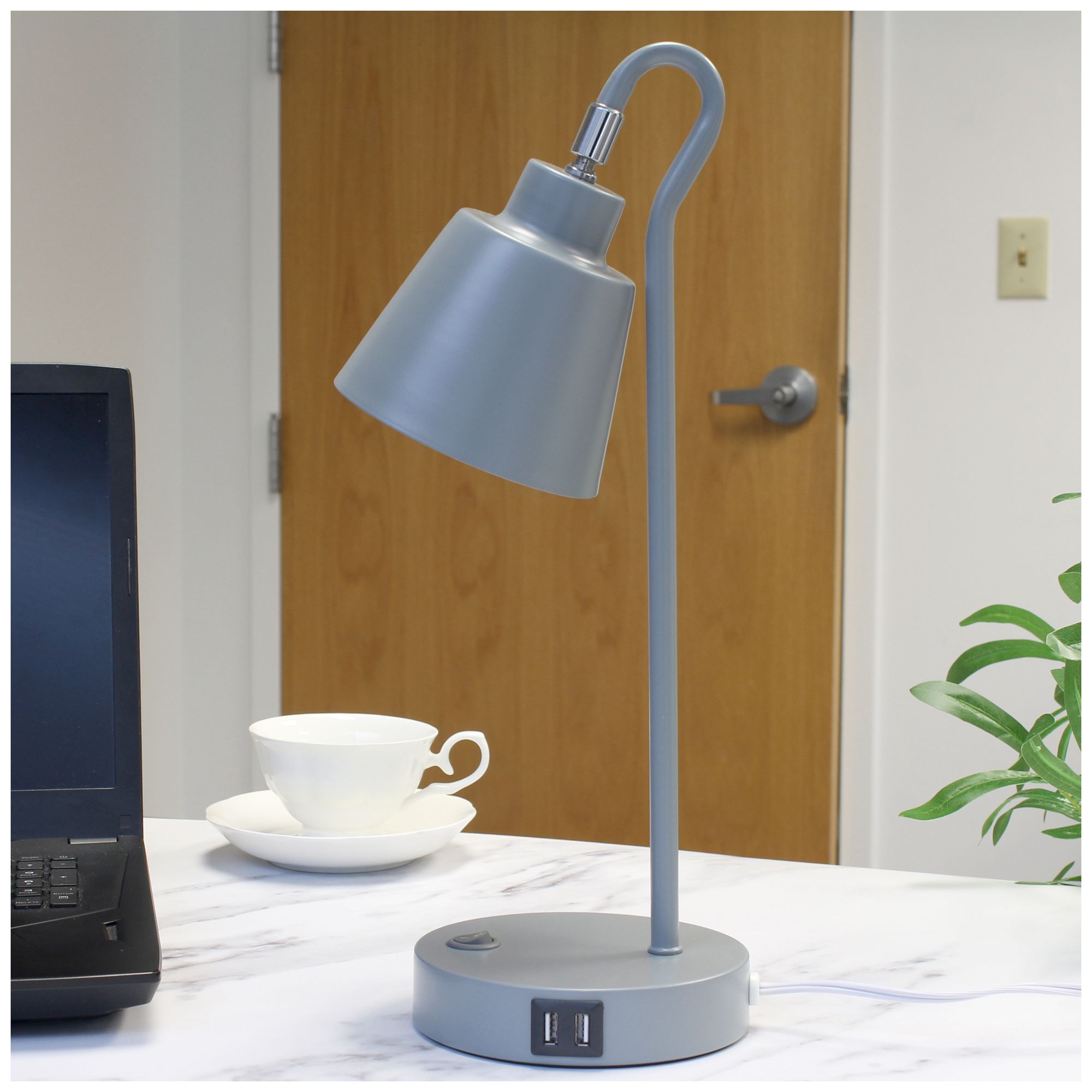 Simple Designs 16" Mtl Looped Desk Task Lp, Adj Shade, Dual USB Ports, Gray