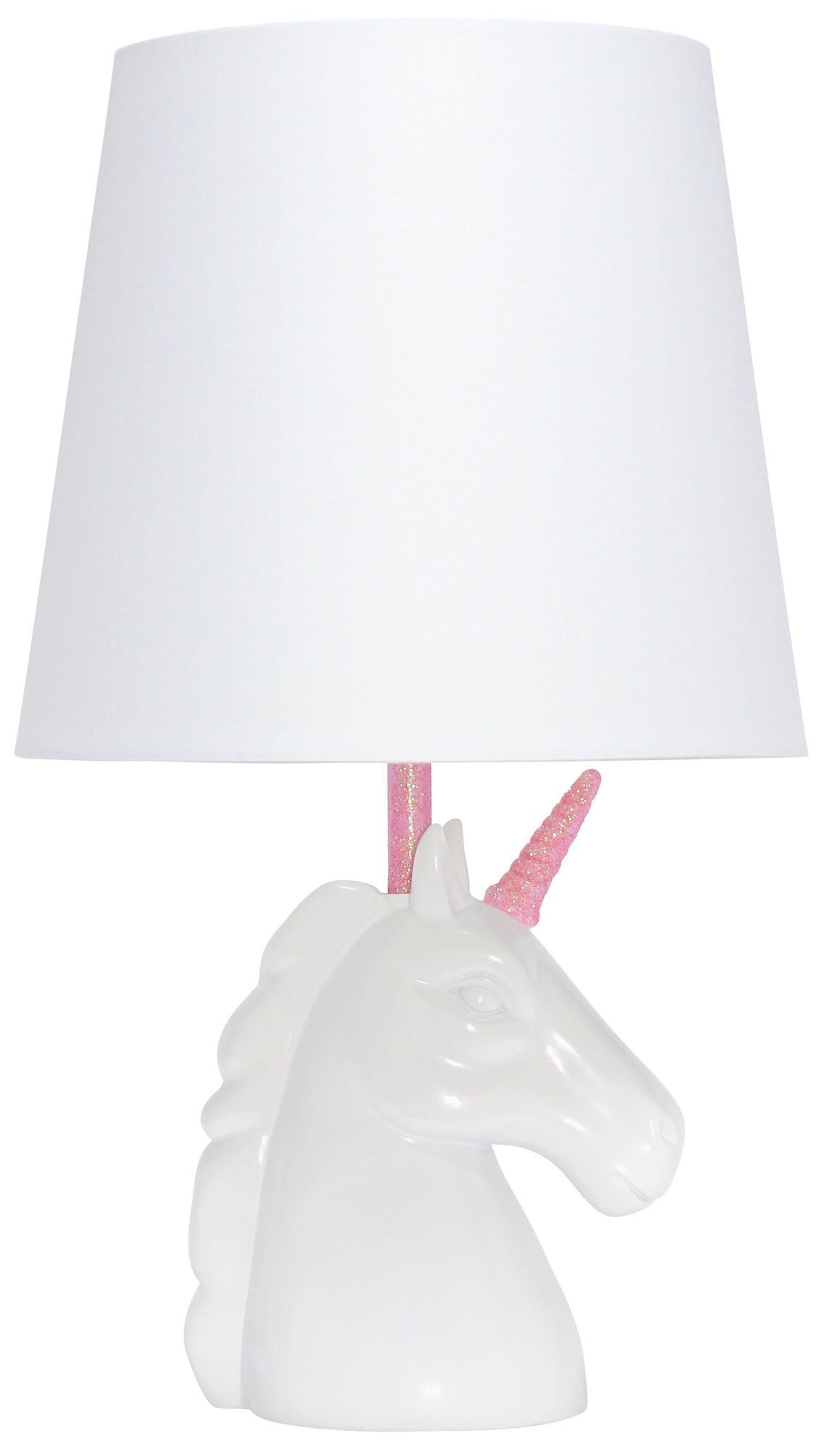 Simple Designs 15.5" Unicorn Lamp, White & Pink Glitter, w/ LED Bu