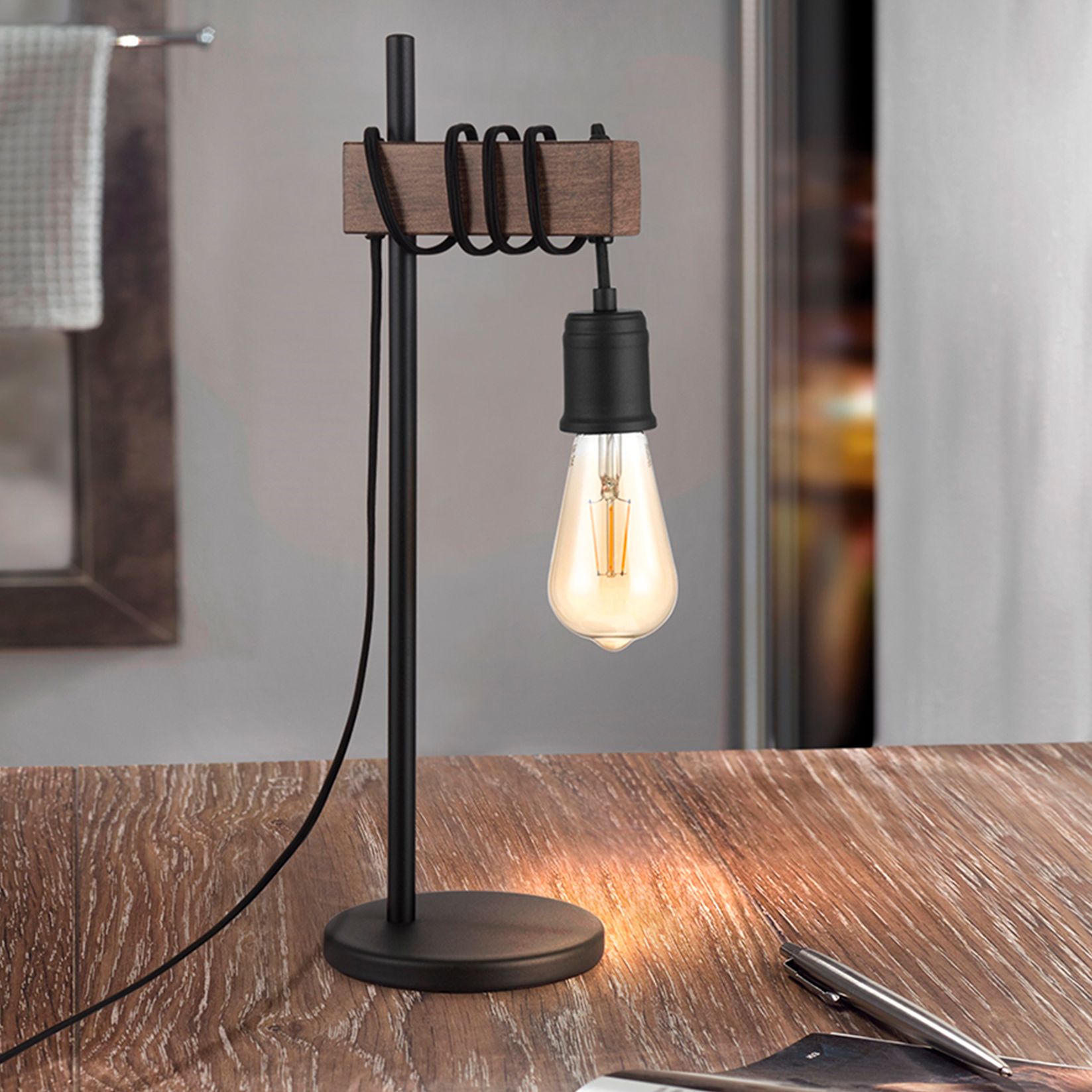 Eglo Violon Black and Dark Brown Accent Table Lamp