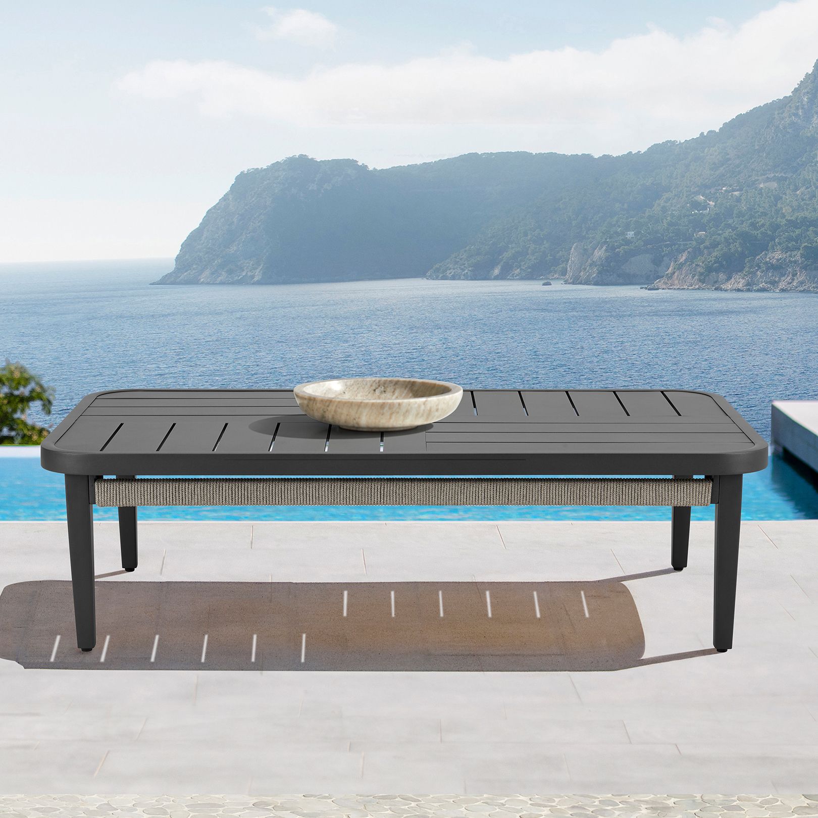 Zella Outdoor Coffee Table in Aluminum, Charcoal Finish and Light Gray Rope